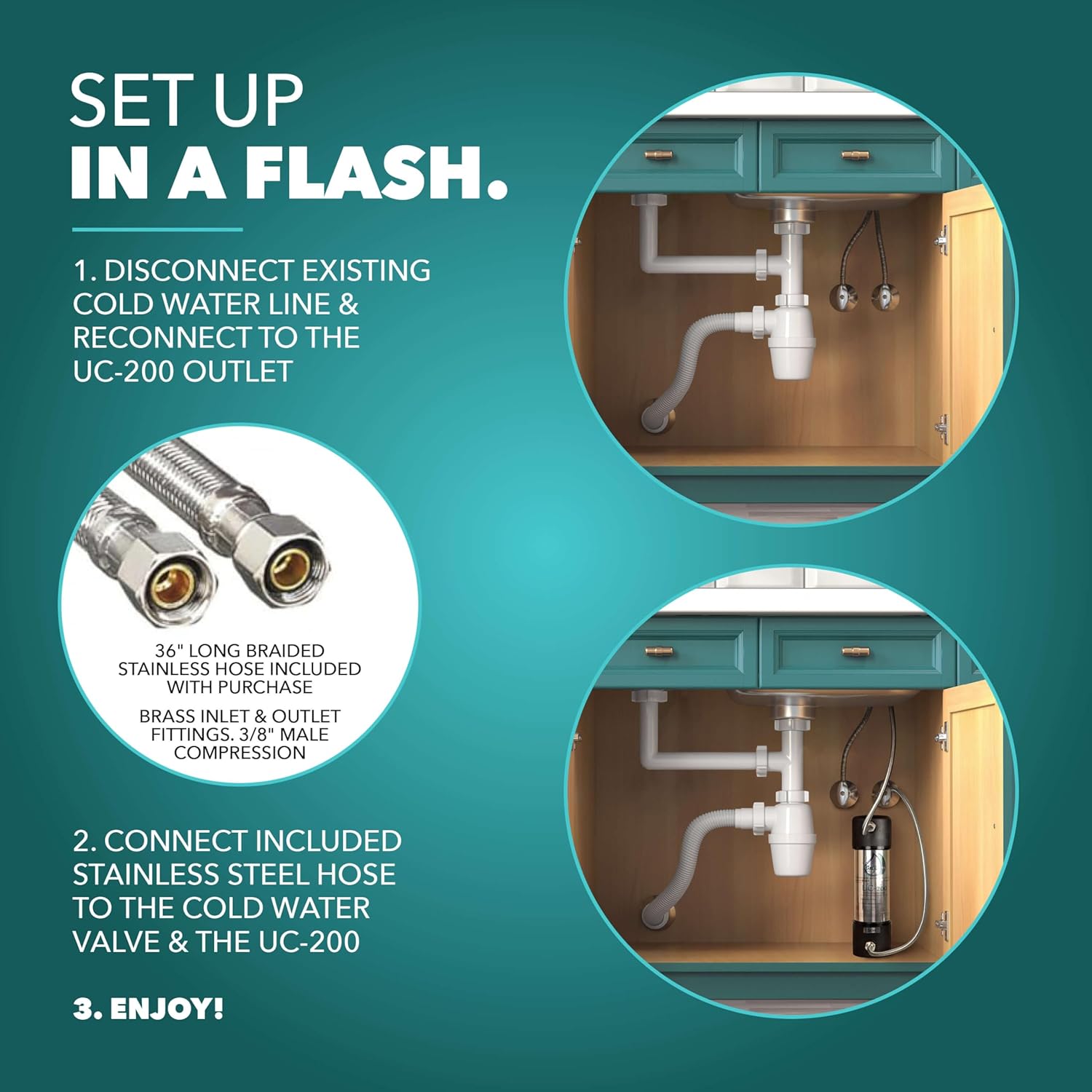 - 3-STAGE FILTRATION: Using a precise blend of Micro Sediment Membranes, KDF-55 and Coconut Shell Carbon, delivering clean, crisp water. The UC-200 purifies without removing beneficial minerals from drinking water