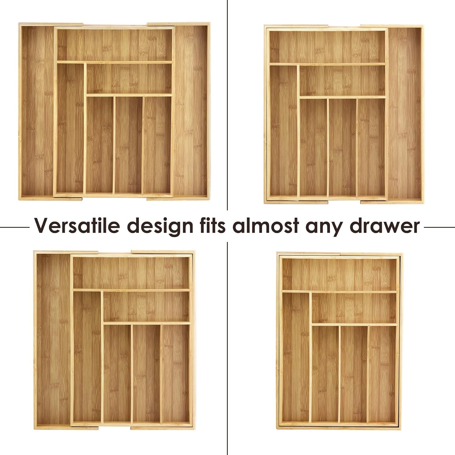 - DURABLE DESIGN: The sturdy bamboo dividers and solid fiberboard base make this adjustable organizer durable and long-lasting