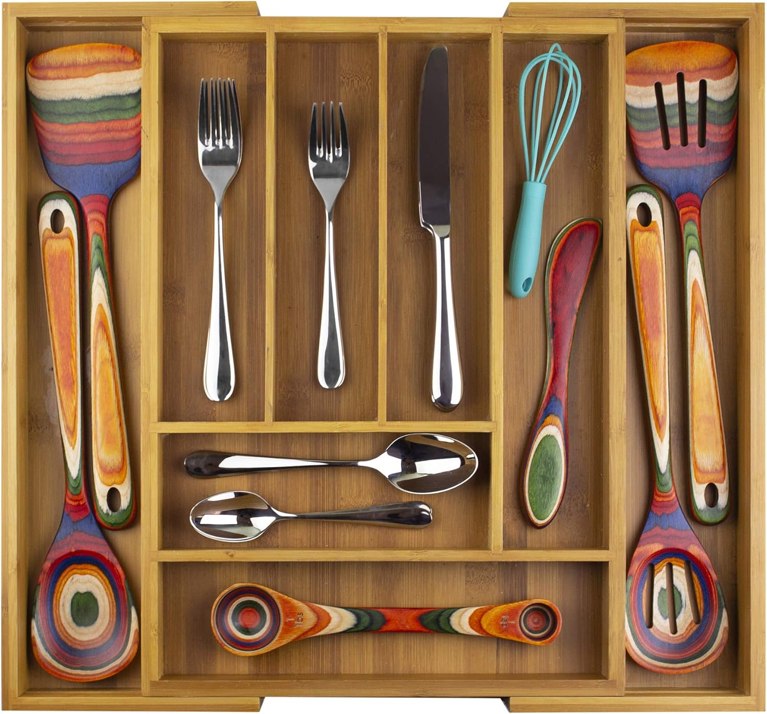 - KEEPS DRAWERS ORGANIZED: This Expandable 8-Compartment Drawer Organizer keeps flatware and utensils neatly organized and easy to find in the kitchen