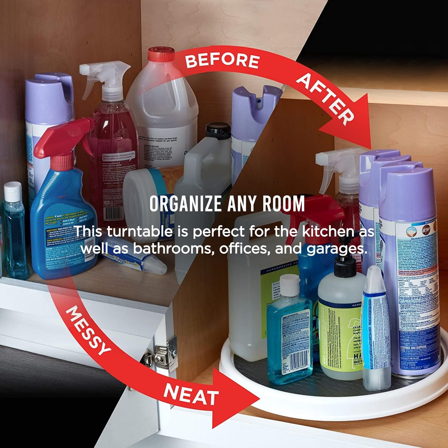 - REVOLVING STORAGE: This pantry lazy Susan is glides easily; revolving storage space maximizes cabinet space and keeps the kitchen organized and tidy.