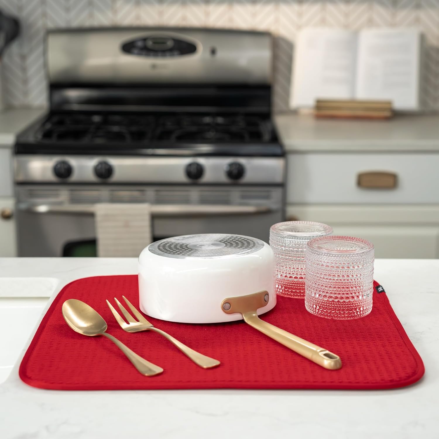S&T INC. Dish Drying Mat, 16” x 18”, Absorbent Microfiber Kitchen Counter Mat, Dish Drying Pad for Dishes, Utensils, Pots and Pans, Large, Red