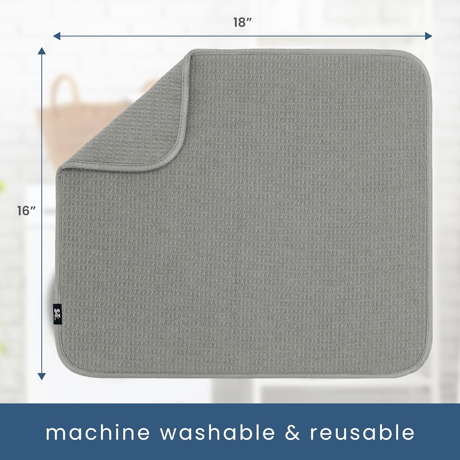 S&T INC. Dish Drying Mat, 16” x 18”, Absorbent Microfiber Kitchen Counter Mat, Dish Drying Pad for Dishes, Utensils, Pots and Pans, Large, Grey