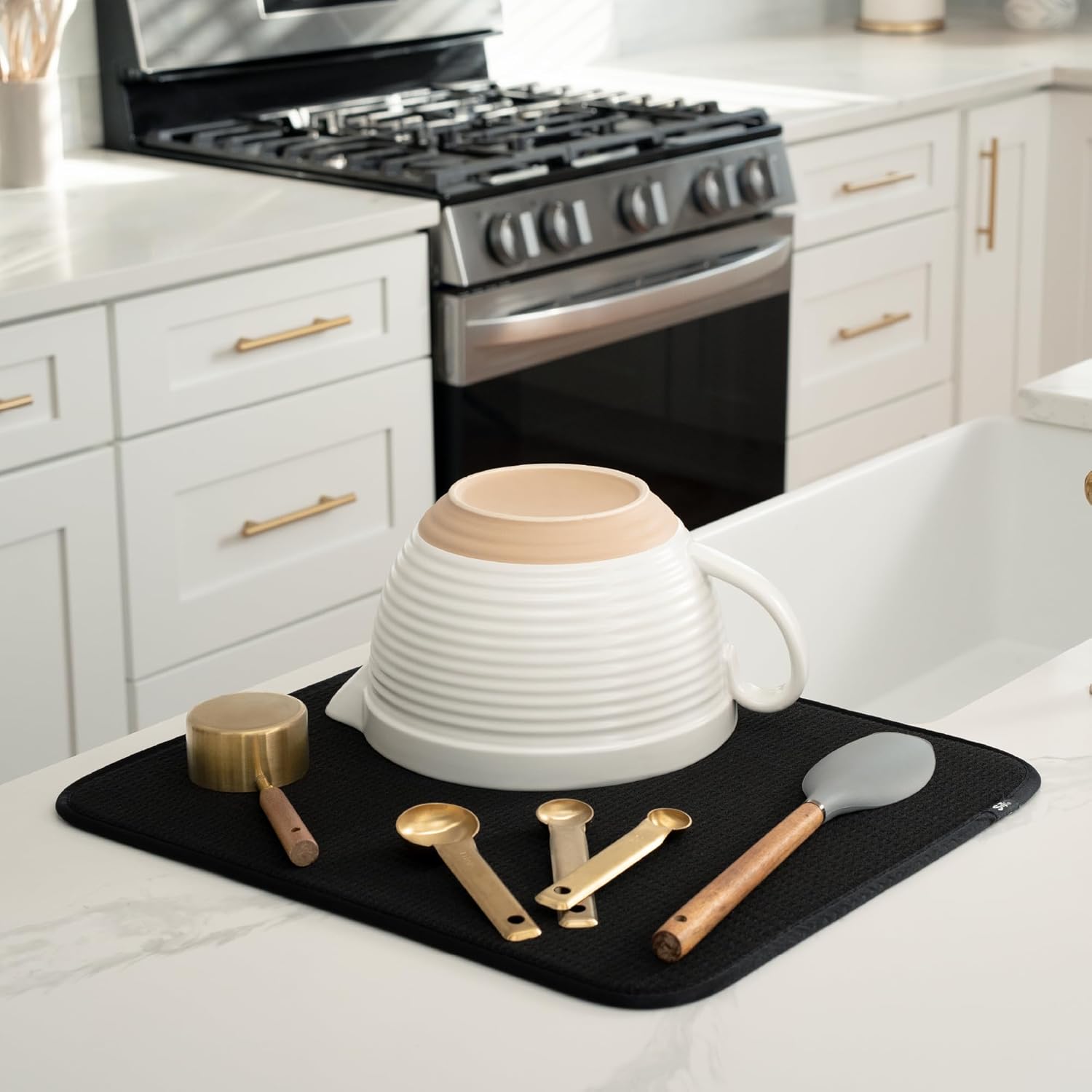 - Dish drying mats for kitchen counter are reusable, machine washable, and easy to store for kitchen organization; durable construction will not chip or break like a stone dish drying mat for kitchen