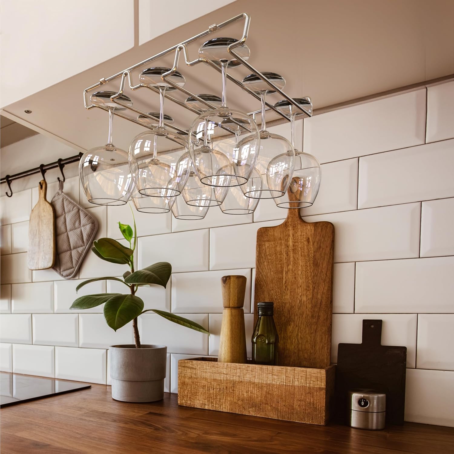 DecoBros Under Cabinet Wine Glass Stemware Rack Holder, Chrome