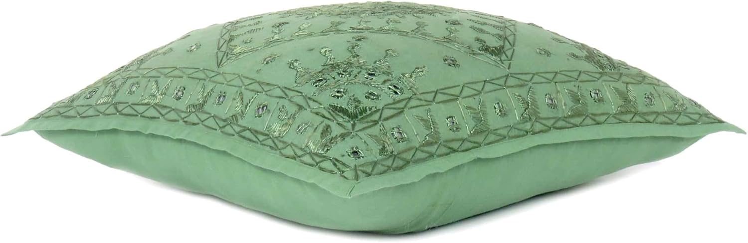 Eyes of India Embroidered Decorative Boho Throw Pillow Cover with Mirrors, Handmade Bohemian Accent Cushion Case for Sofa Couch Bedroom Living Room (Green, 16" x 16")