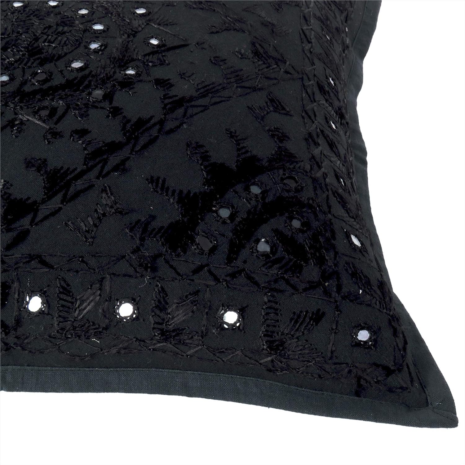 Eyes of India Embroidered Decorative Boho Throw Pillow Cover with Mirrors, Handmade Bohemian Accent Cushion Case for Sofa Couch Bedroom Living Room (Black, 24" x 24")