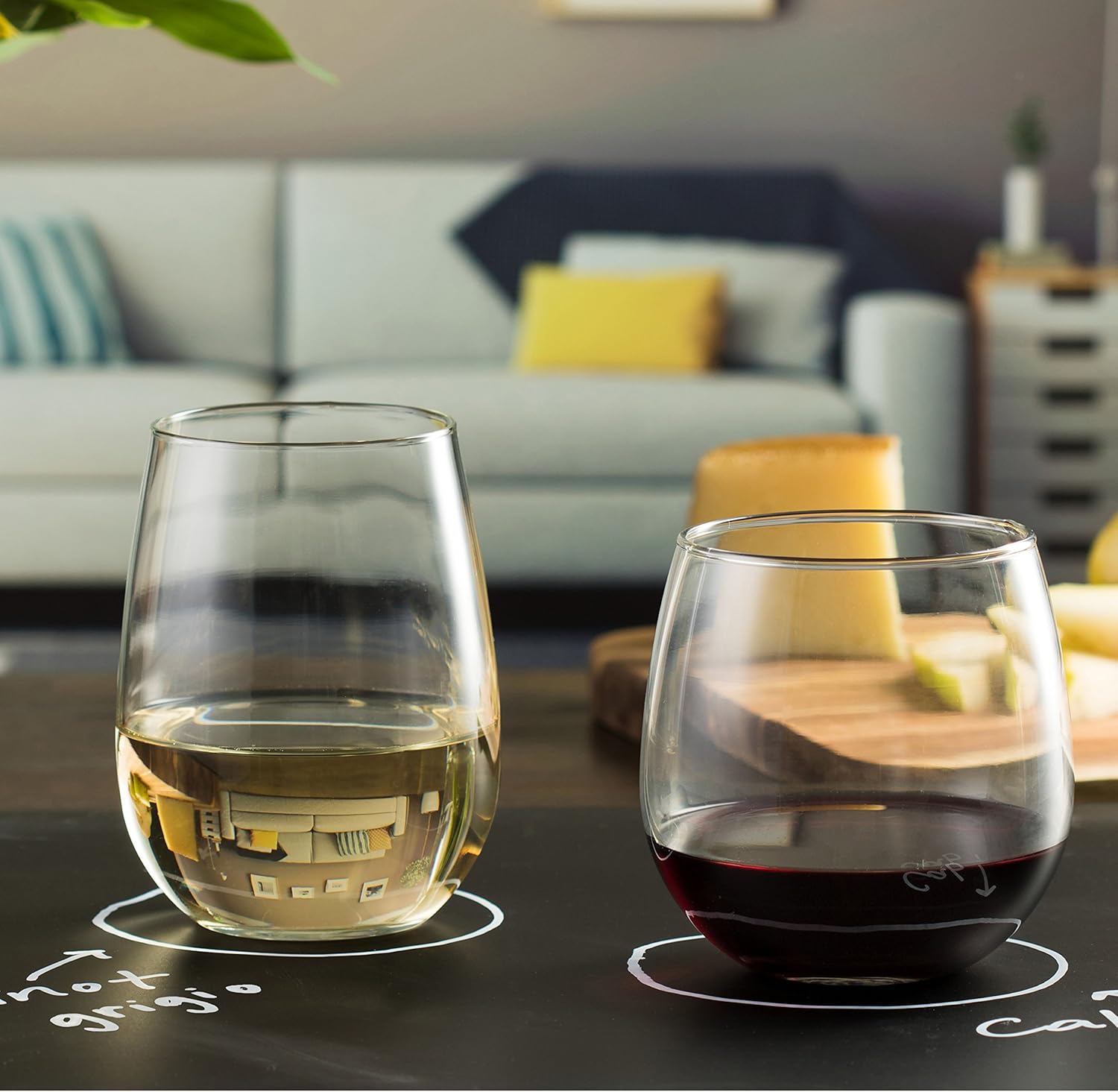 - Wine Glasses Party Set: Ideal for dining and entertaining, our glass sets offers an effortless upgrade to your drinkware collection, this stemless wine glass set has 6, 16.75 Oz red wine glasses and 6, 17 Oz white wine glasses