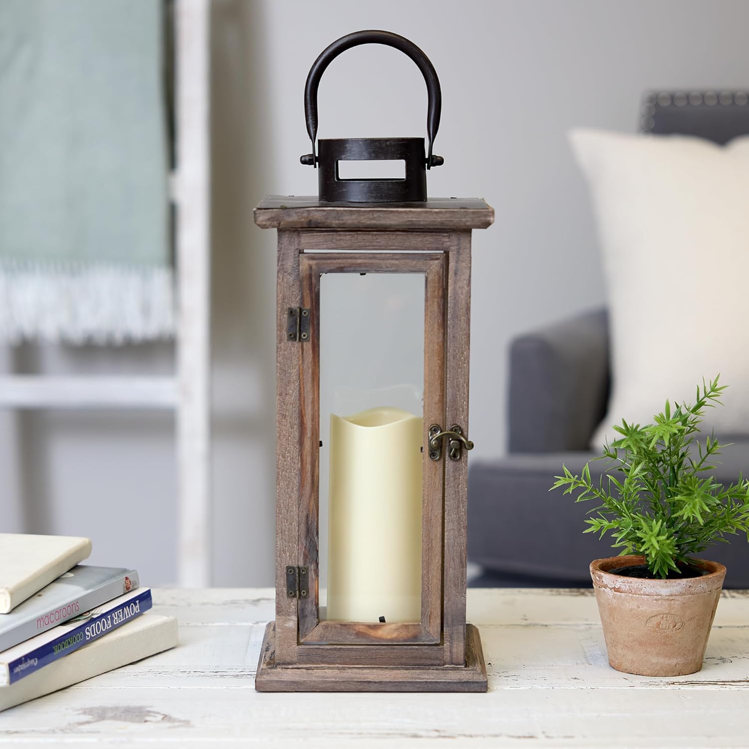 - Lantern will cast beautiful light wherever you display it, inside or outside; removable glass and wood panel allows the easy replacement of your choice of candle or LED to light up the space and create a memorable home decor piece