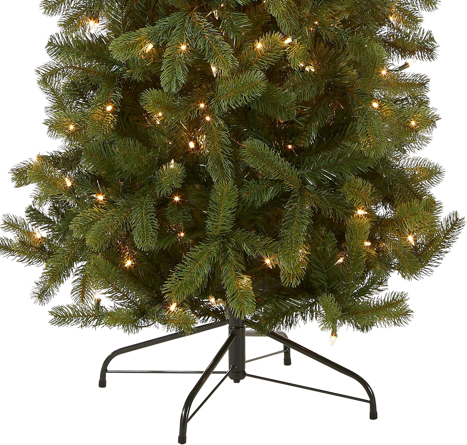 National Tree Company Pre-Lit 'Feel Real' Artificial Slim Downswept Christmas Tree, Green, Douglas Fir, White Lights, Includes Stand, 7.5 feet