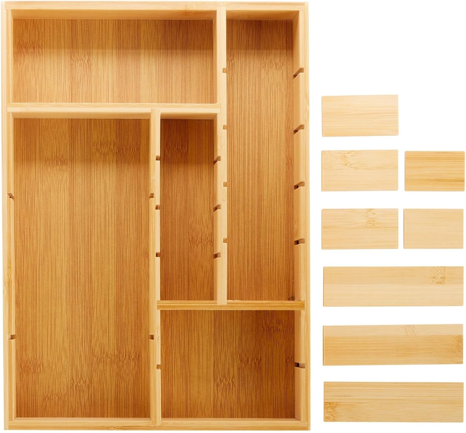 - Customizable Organization: Featuring eight adjustable dividers, this bamboo silverware drawer organizer allows you to tailor compartments according to your needs. Enhance efficiency in your kitchen or office by creating space for utensils, craft supplies, or personal items