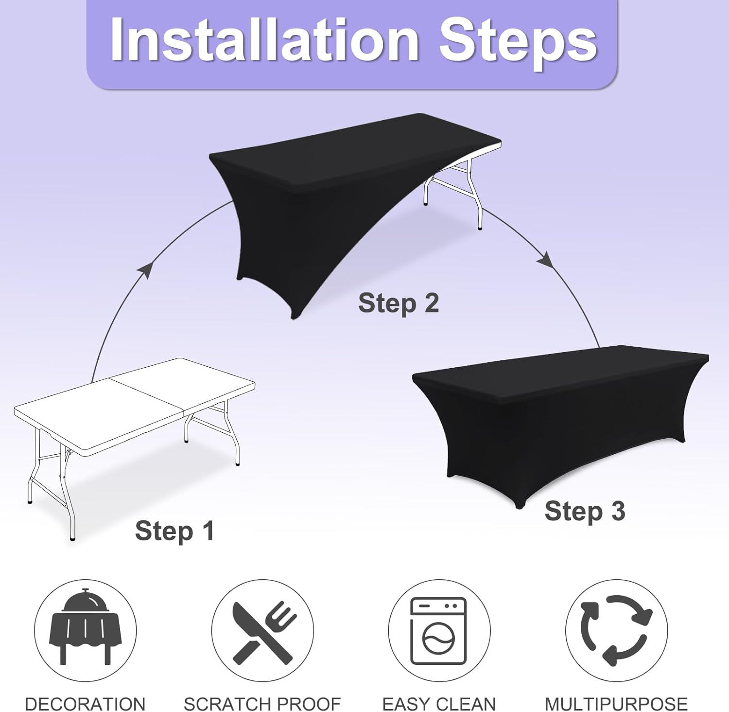 - 2.Why This Cover?: This table cover made from 90% high-quality polyester and 10% spandex material. So that it is Durable, Long-Lasting, Wrinkle-Resistant. The strong elastic hem ensures a tight grip on your table, preventing slipping or sliding, even during active use. It’s built to last through many times washes and uses. Whether it’s a family dinner, wedding, birthday party, holiday celebration, or outdoor picnic, this tablecloth adds a touch of elegance to any setting.