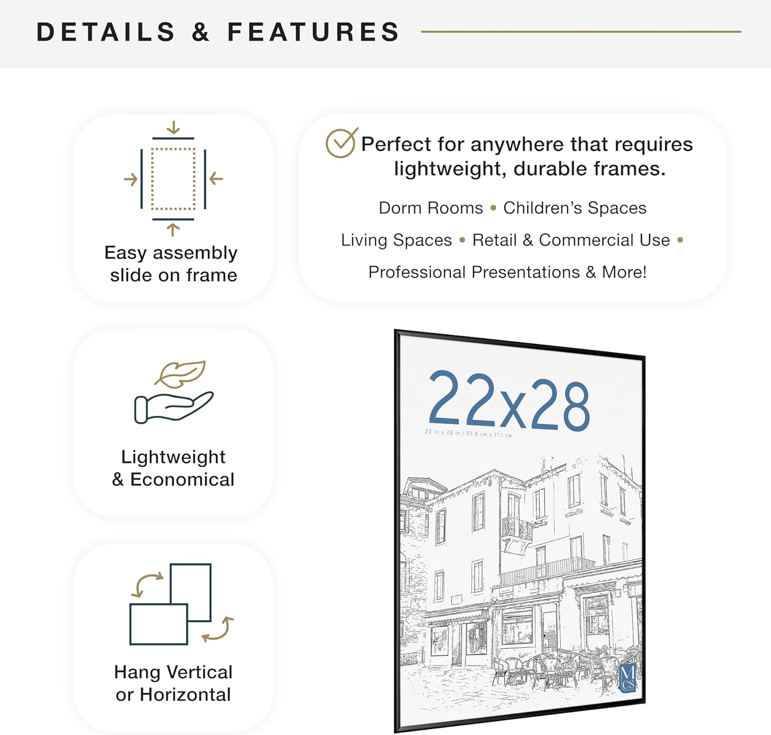 MCS Original Poster Frame 22x28 Black Lightweight Vertical & Horizontal Wall Hanging Large Picture Frame for Posters, Art Prints & Gallery Wall (2-Pack)