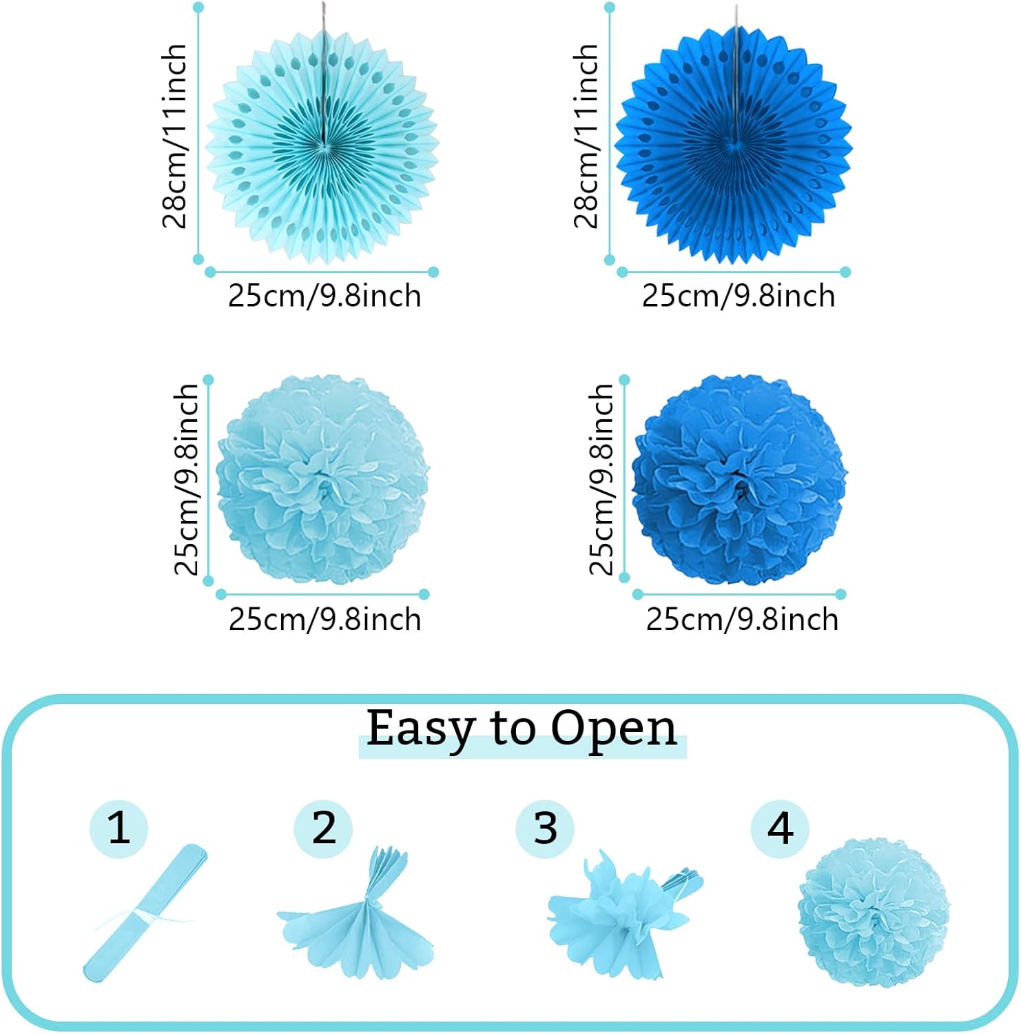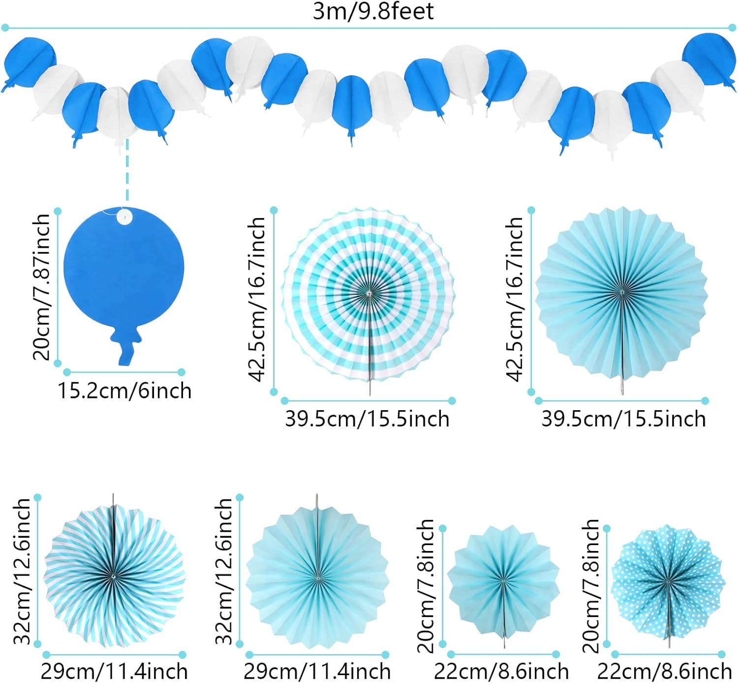 - 【What you will get】6 x paper fans, 8 x paper pompoms, 4 x paper hollow fans, 1 x paper hot air balloon garland( Color: Blue)