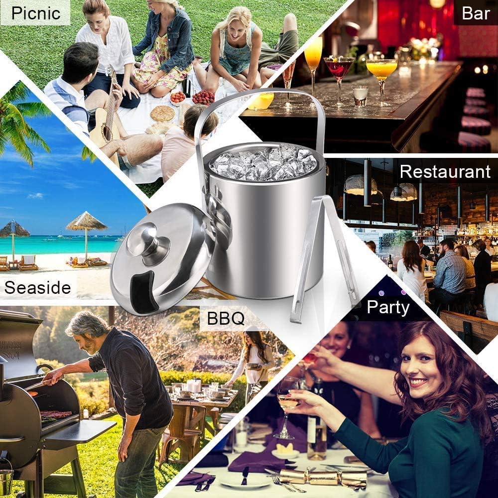 - Double-walled and insulated Ice Bucket: keeps your ice cold for hours, keeps your drinks (Wine or Champagne) and fruits refreshingly cool. An ice container is a perfect addition to any event.