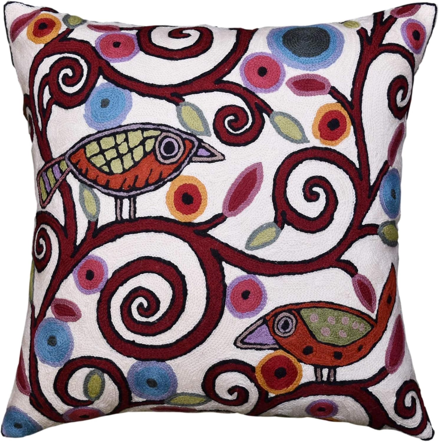 - ๐ฆข DYNAMIC COLORS AND MOTIF DESIGN: Enliven your space with the charm of Birds Floral tree of Life toss pillow covers. These hand-embroidered treasures seamlessly blend artistic elements, creating a harmonious design and an air of sophistication. Pillow insert not included, showcasing only the cover for sale. Featuring a zipper closure on the back, the pillow cover size is 18 x 18" (45 x 45 cms). With a non-reversible design and backing in canvas, these pillows redefine your decor.