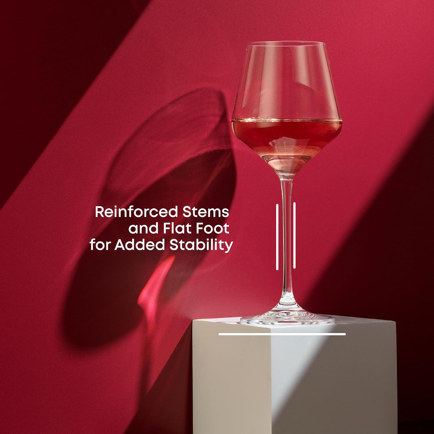 - EXQUISITE DESIGN: This wine glasses set of 4 was designed having in mind elegance and simplicity. With beautiful glass cut, perfectly uniform rims and sophisticated lines, these crystal glasses will certainly impress anyone!