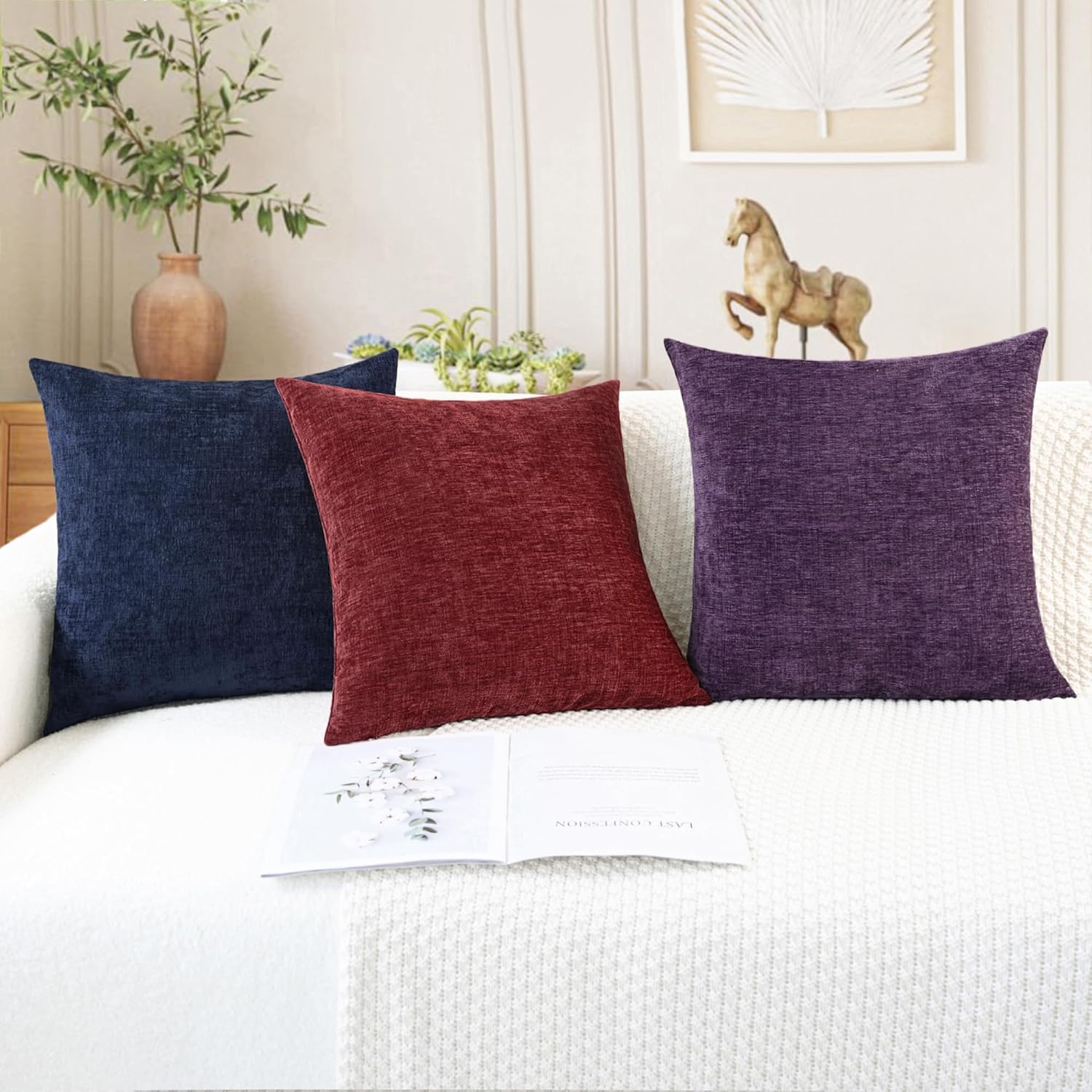 CaliTime Throw Pillow Covers Decorative 20 X 20 Inches Pack of 2 Cozy Chenille Cushion Cases for Couch Sofa Bed Living Room Home Navy Blue