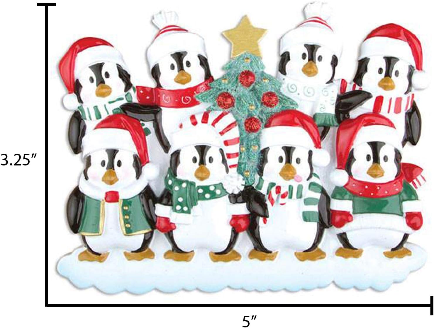Penguin Family of 8 Ornament 2025 Personalized Family Christmas Ornaments 2025 | Snowy Xmas Tree Holiday Penguins Personalized Tree Ornaments for Grandchildren Siblings & Grandkids of Eight Ornament