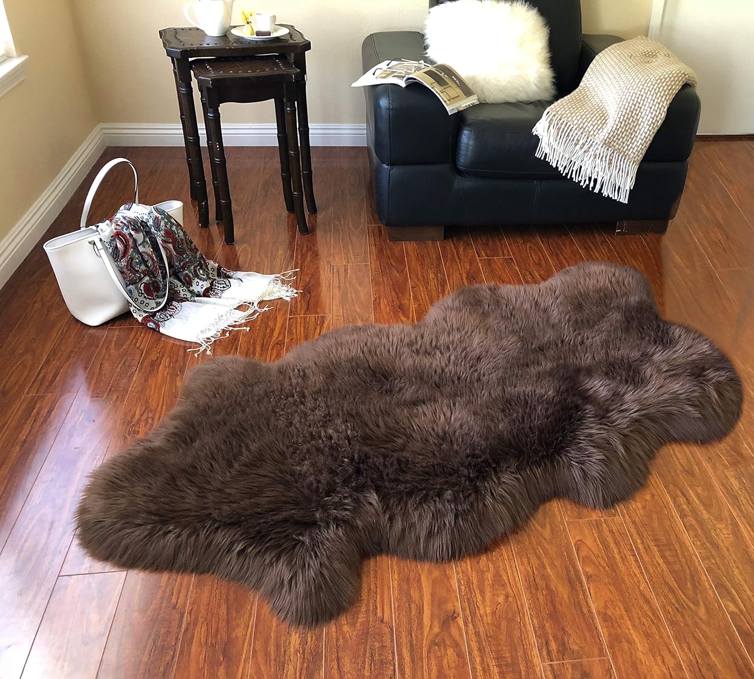 - MULTIPURPOSE DESIGN REAL SHEEPSKIN RUG: The sheepskin rugs are multipurpose and used as seat covers rug, couch pads, and area carpets. The stain-resistant, latex-free rug is designed for daily indoor use faux fur that is a super soft material rug under your feet. This free shape silky shag rug that works with a wide variety of decors great addition for kidβs room rug.