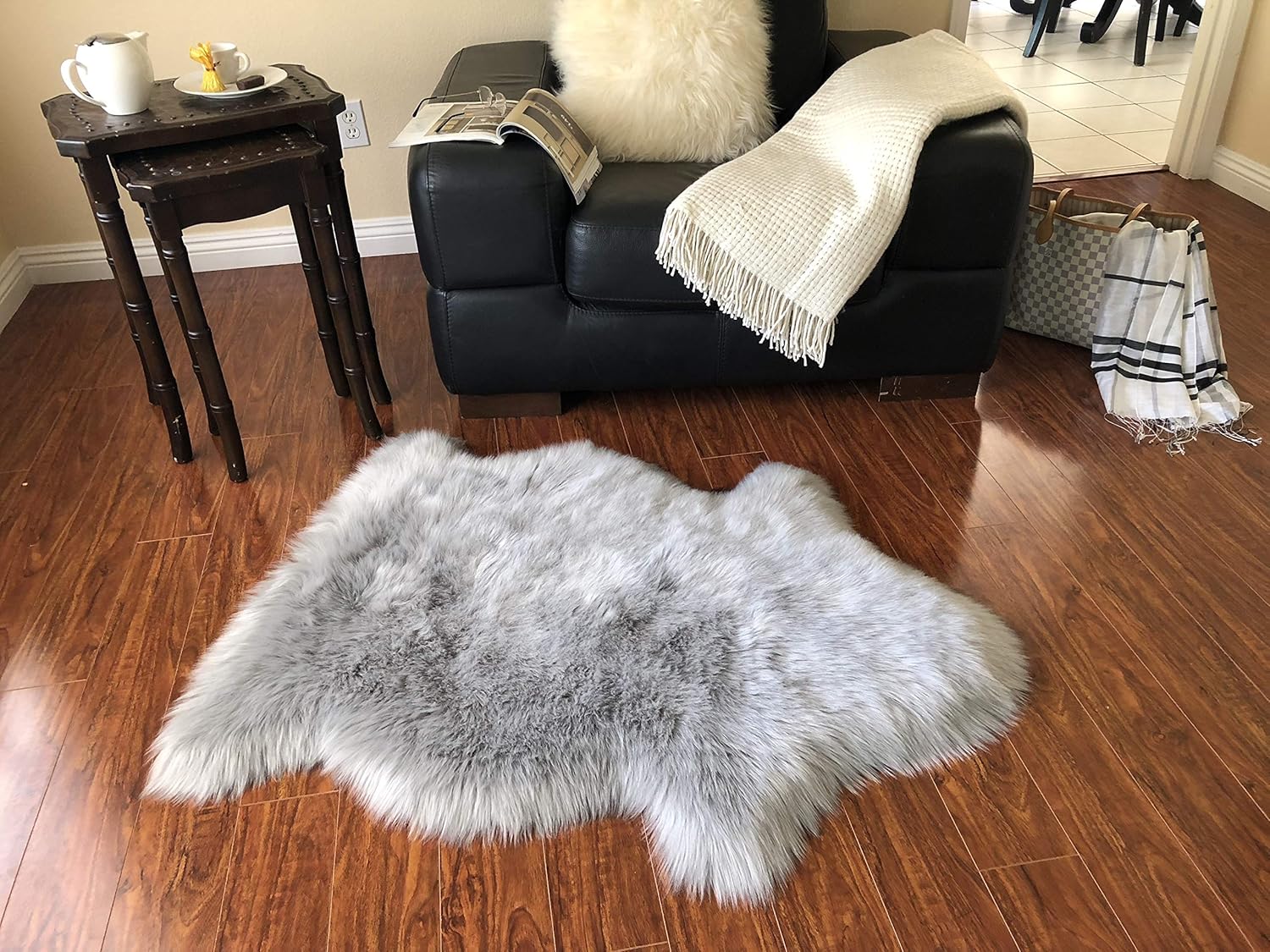 - MULTIPURPOSE DESIGN REAL SHEEPSKIN RUG: The sheepskin rugs are multipurpose and used as seat covers rug, couch pads, and area carpets. The stain-resistant, latex-free rug is designed for daily indoor use faux fur that is a super soft material rug under your feet. This free shape silky shag rug that works with a wide variety of decors great addition for kidβs room rug.
