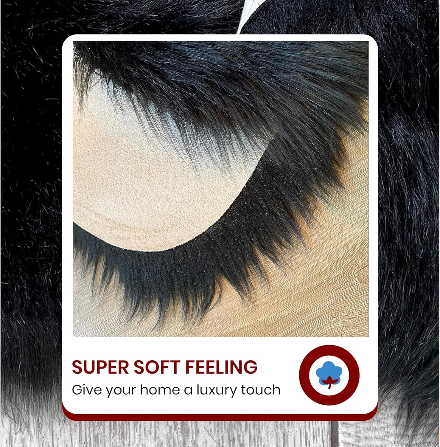 LAMBZY Faux Sheepskin Hypoallergenic Free Shape Silky Shag Rug, Luxury Shaggy Silky Plush Carpet for Bedrooms Rugs Living Room Kids Rooms Sofa Floor Rugs (Triple Side by Side 3'x6', Black)