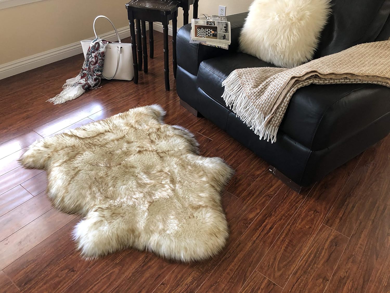 - MULTIPURPOSE DESIGN REAL SHEEPSKIN RUG: The sheepskin rugs are multipurpose and used as seat covers rug, couch pads, and area carpets. The stain-resistant, latex-free rug is designed for daily indoor use faux fur that is a super soft material rug under your feet. This free shape silky shag rug that works with a wide variety of decors great addition for kidβs room rug.