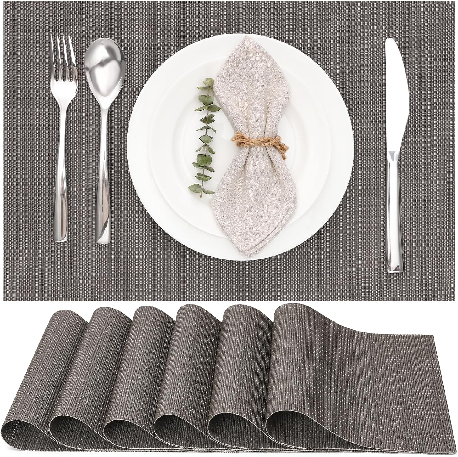Myir JUN Placemats Set of 6, Vinyl Woven Placemats Place Mats Indoor Washable Table Mats Non-Slip Place mats for Dining Table (Dark Gray, Set of 6)