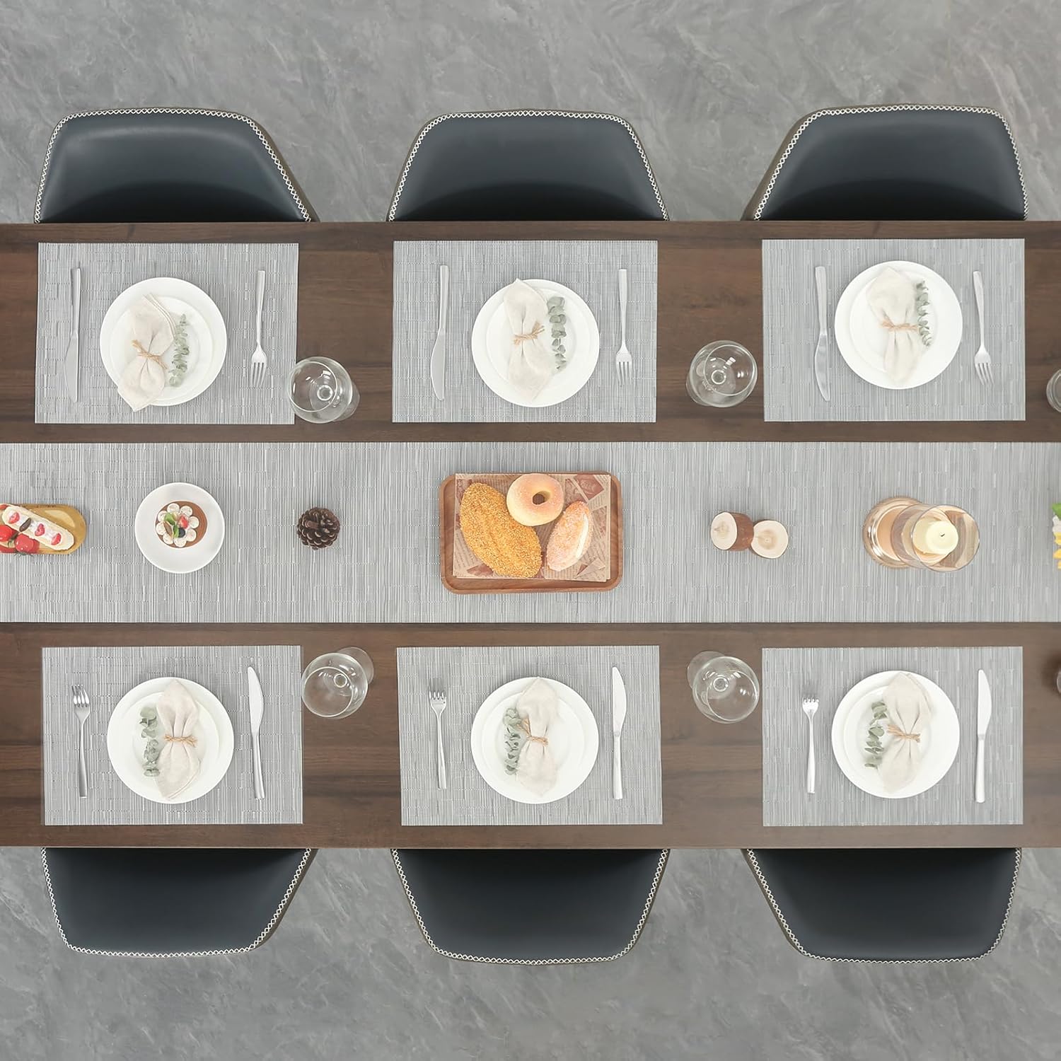 Myir JUN Placemats Set of 6, Vinyl Woven Placemats Place Mats Indoor Washable Table Mats Non-Slip Place mats for Dining Table (Silver, Set of 6)