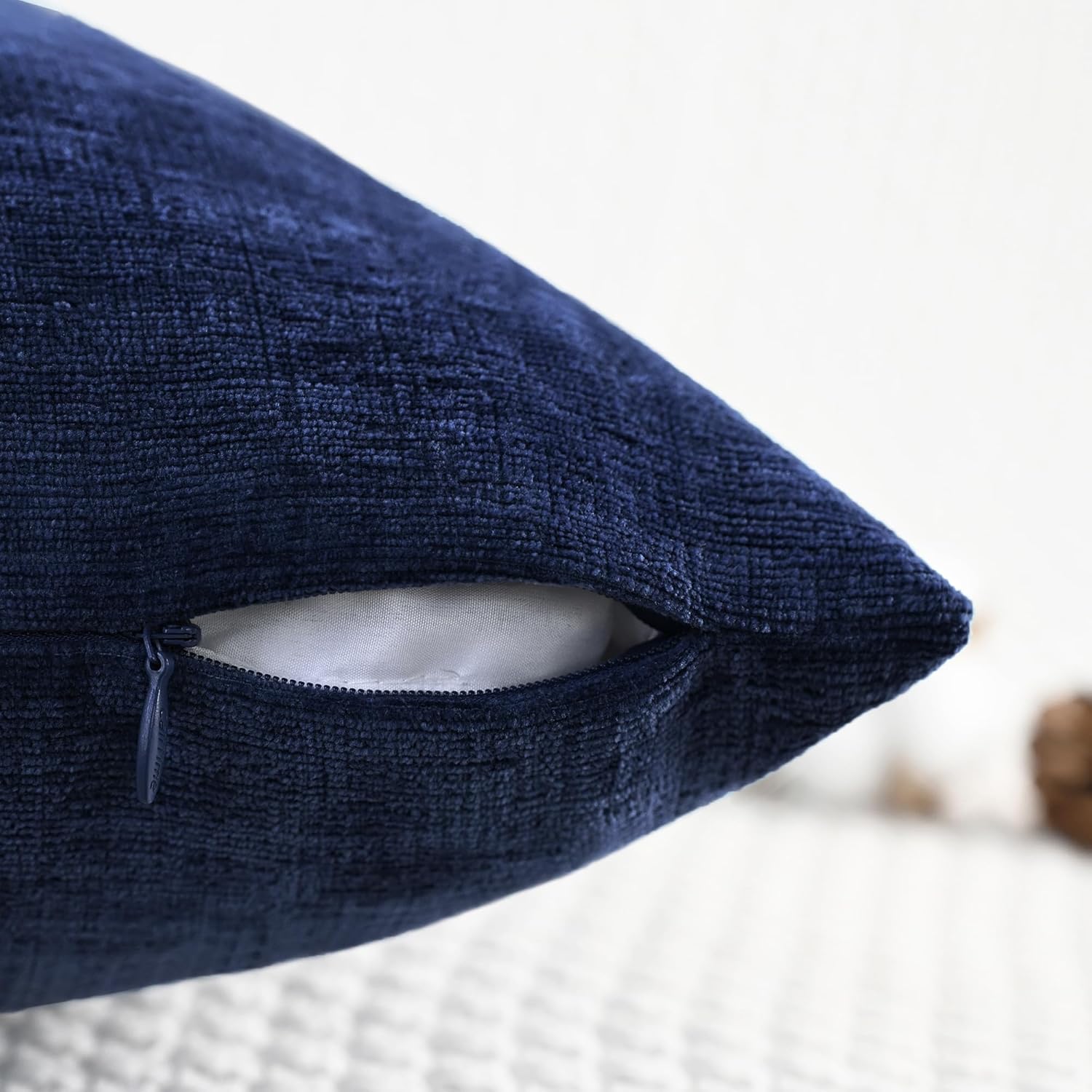 CaliTime Throw Pillow Covers Decorative 22 X 22 Inches Pack of 2 Cozy Chenille Cushion Cases for Couch Sofa Bed Living Room Home Navy Blue