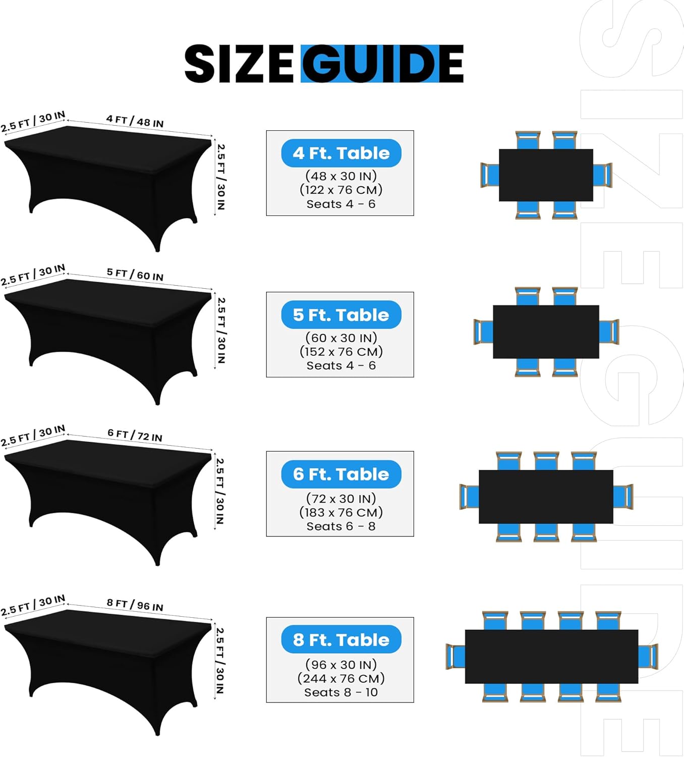 - Snug Fit with Reinforced Pockets: Designed for a 8-foot table (96"L x 30"W x 30"H), this 2-way stretch spandex cover features reinforced leg pockets to ensure a secure, professional look that won’t slip or ride up.
