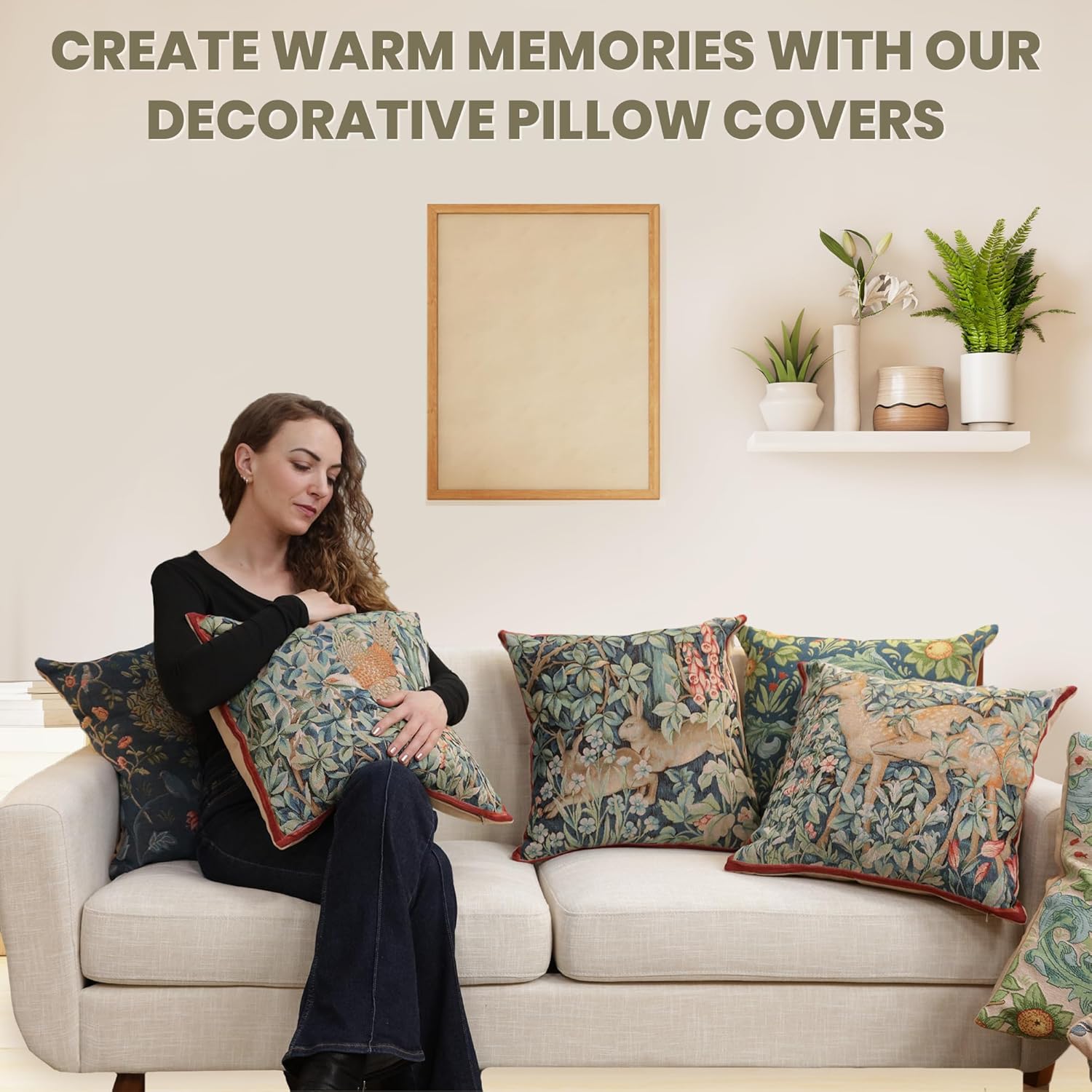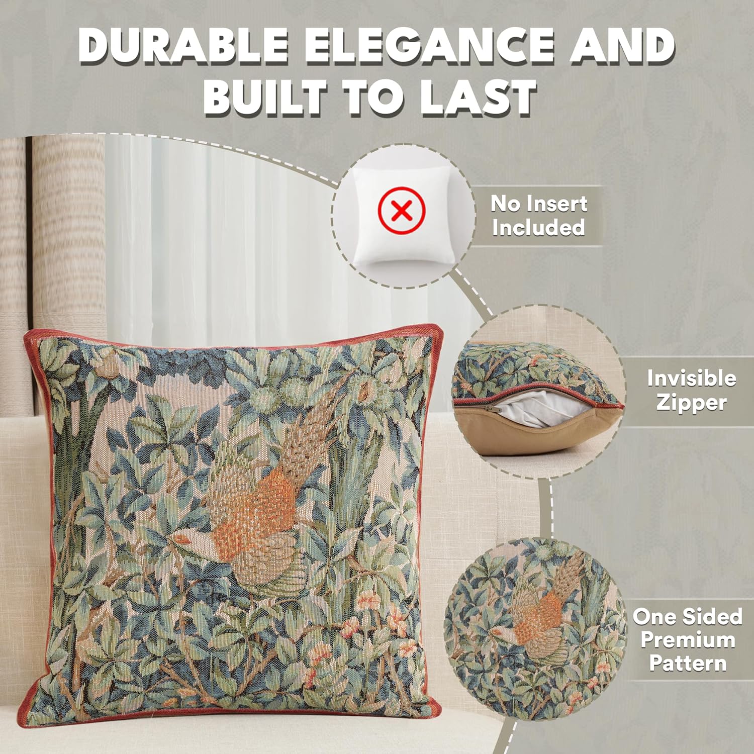 - Timeless Durability: Elevate your decor with our skin-friendly William Morris pillow covers 14βX14β, where quality and style come together. A sturdy hidden zipper ensures easy pillow insertion/removal, while the overlock stitches prevent seam ripping. Unlike thin printed cushion covers prone to tearing, our decorative pillows for couch with a super-soft backside are crafted with thick premium threads for long-lasting quality. THE PACKAGE INCLUDES A SINGLE TAPESTRY PILLOW COVER WITHOUT AN INSERT