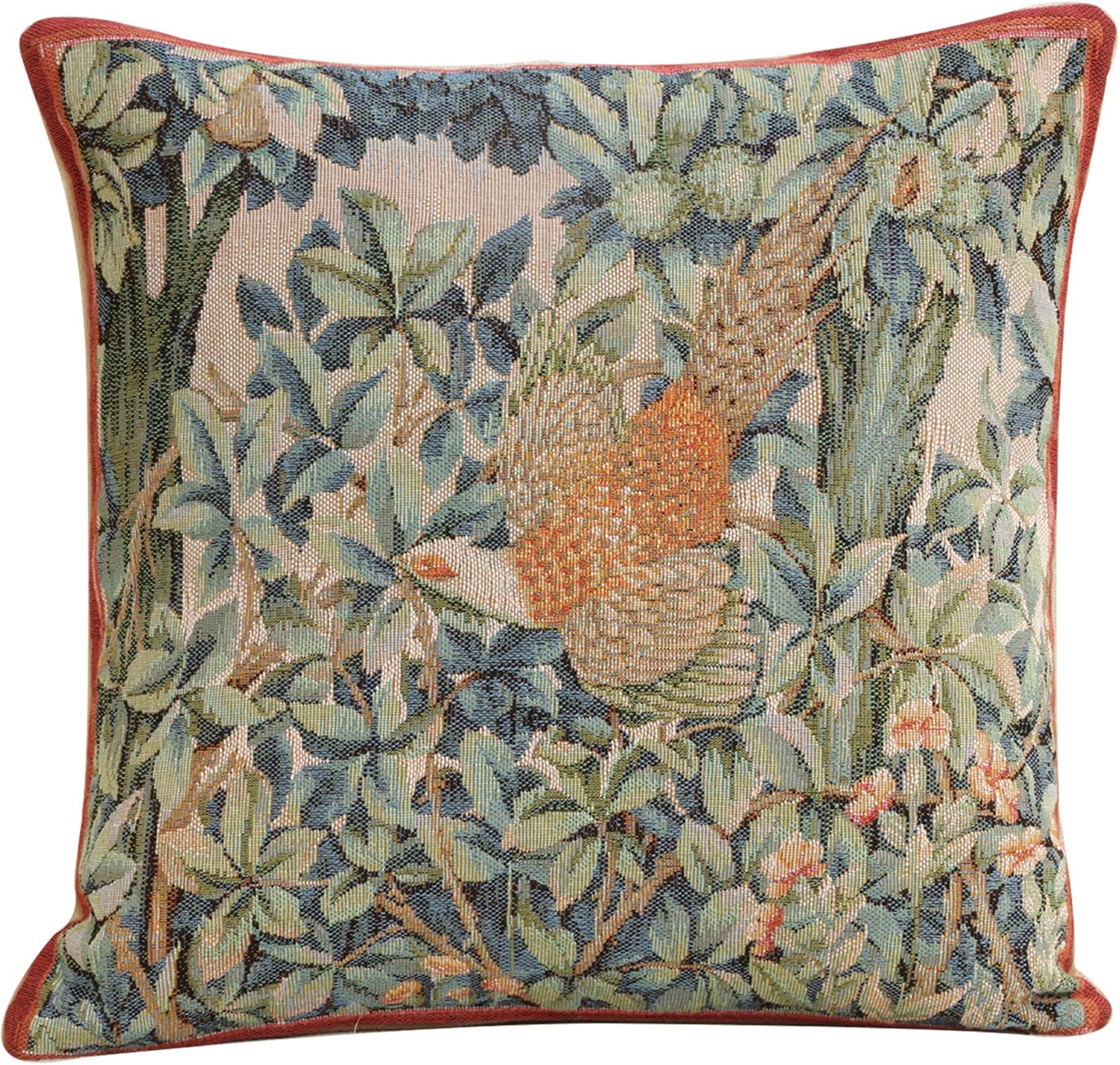 Charlotte Home Furnishings Decorative Tapestry Pillow Cover 14x14 in, Green Pheasant Couch Throw Pillow Cover, French Country Square Cushion Cases for Bed Room Home Decor, Soft Cotton Jacquard Woven