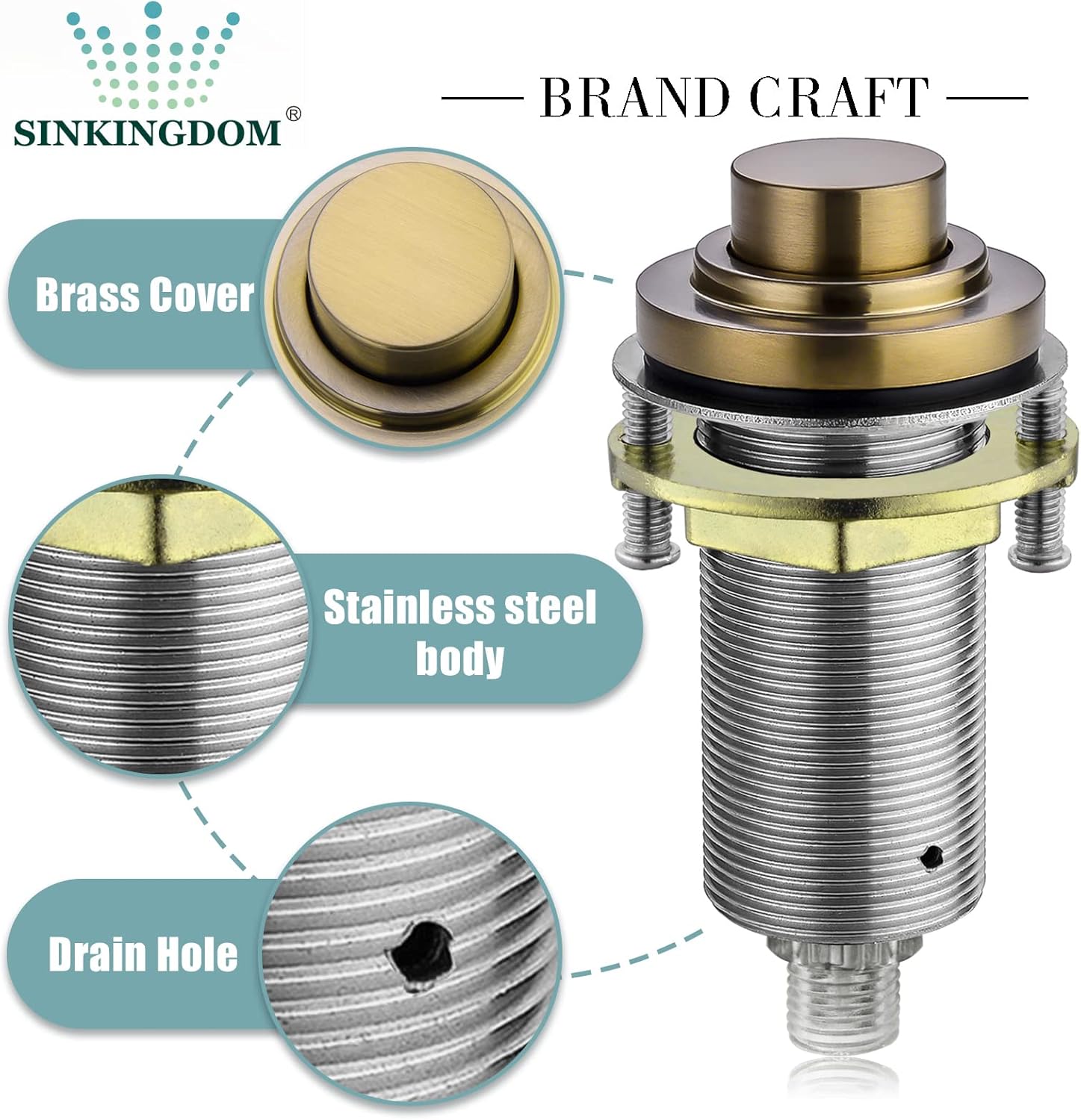 SinkTop Air Switch Kit (Long Full Brass Button) for Disposal, Dual Outlet, (Champagne Bronze)