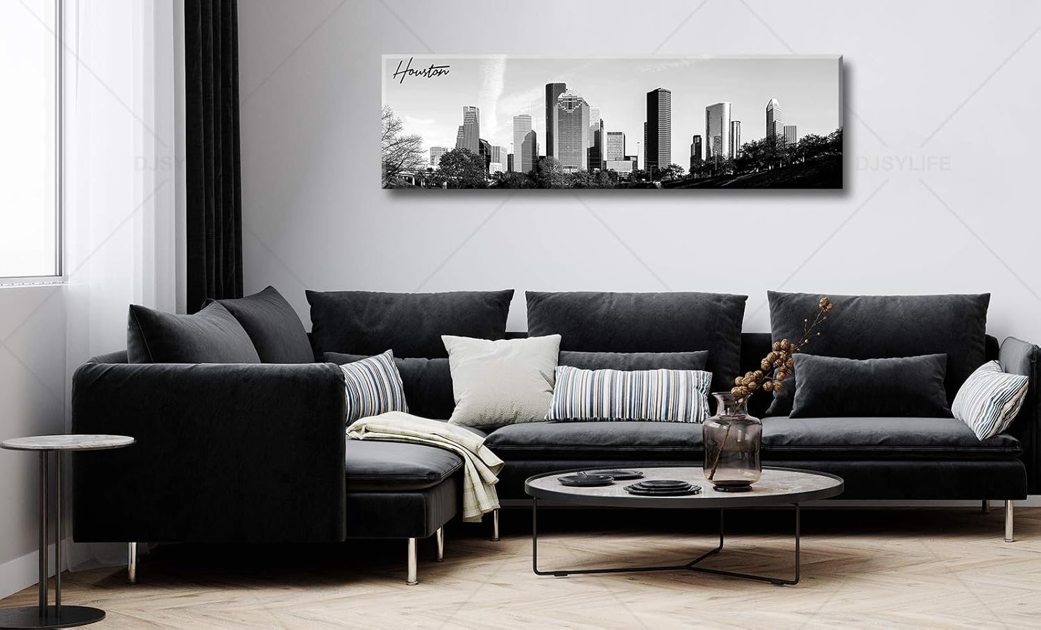 Black and White Wall Art Houston Skyline Canvas Print Picture Panoramic Cityscape Poster Decoration for Bedroom Office Home Decor Framed and Ready to Hang, 13.8"x47.3"
