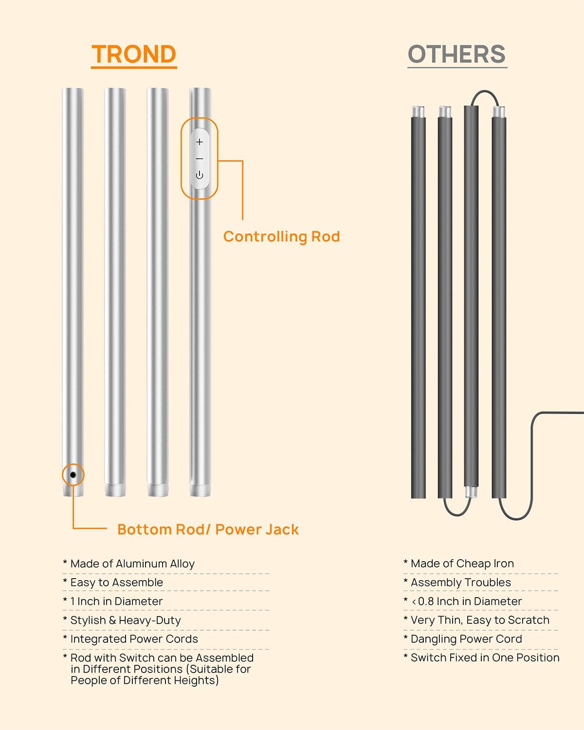 - Long-term and Reliable Customer Service: TROND provides an 18-month warranty service for the floor lamp. If you encounter a broken product, please feel free to contact us. Even if it is out of period, we are always here for you