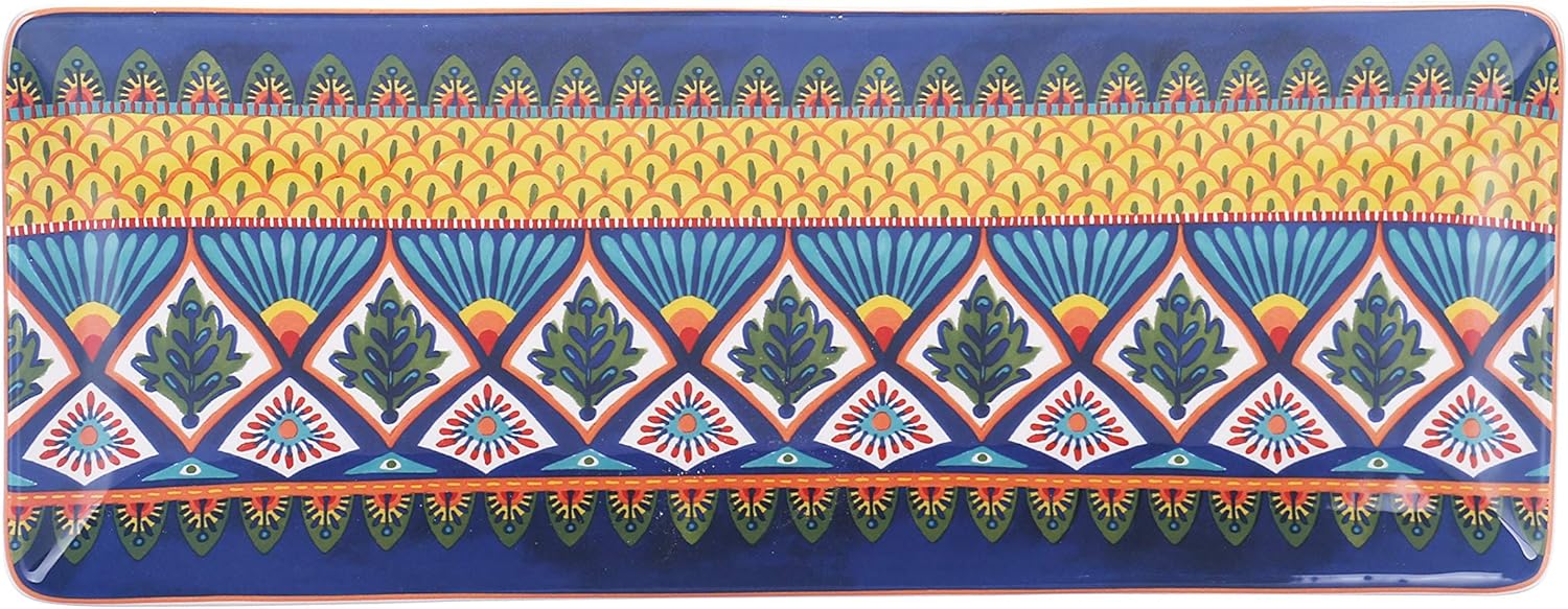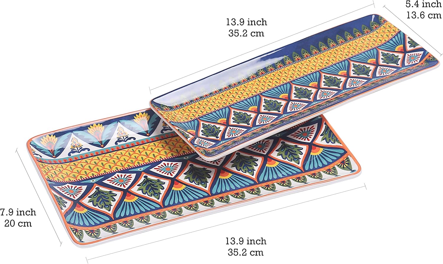 Bico Havana Ceramic 14 inch Rectangular Serving Platter, Set of 2, for Serving Salad, Pasta, Cheese, Ham, Appetizer, Microwave & Dishwasher Safe