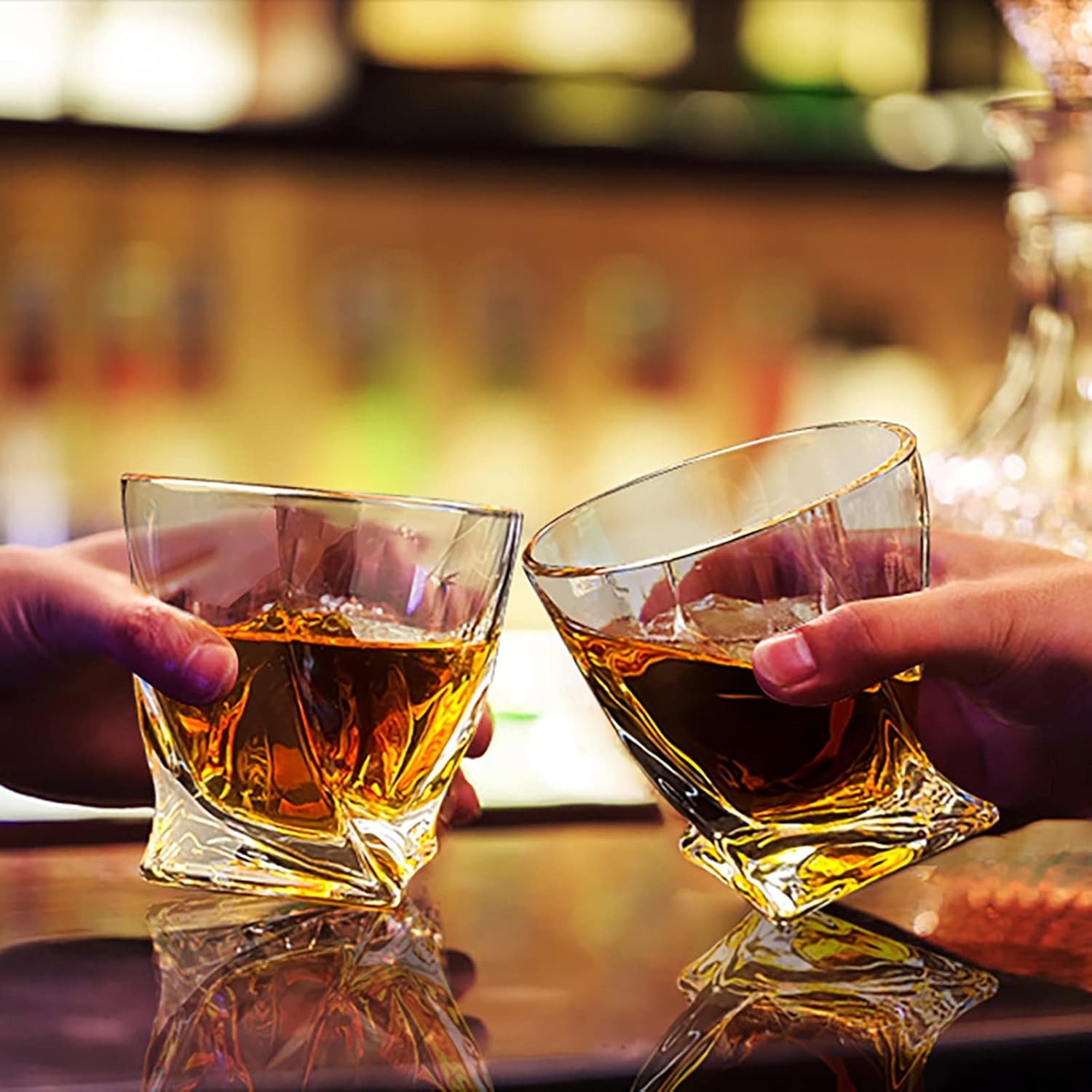 - [Stylish and Elegant Design]: Featuring a twisted and square bottom design brings it elegance. The classic style makes it the perfect addition to your barware tools collection. The elegant twisted design will enhance drinking experience. Ideal glasses for Whiskey, bourbon, Irish, Tennessee Rye, Scotch or any other liquor you like.