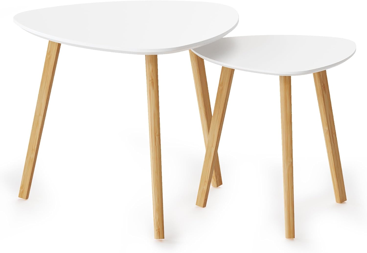 BAMEOS Bamboo Nesting Triangle End Table,Set of 2 Coffee Table Modern Minimalist Side Table for Living Room, Balcony in White