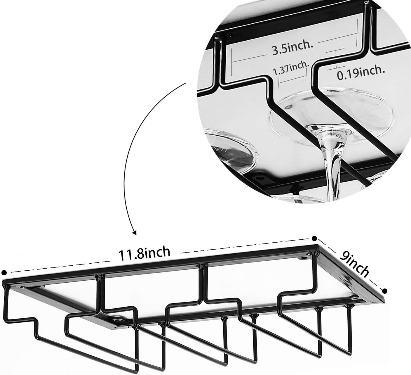 - 🍷EASY TO INSTALL: Comes with the mounting hardware, no advance drilling advance required, just a few minutes to complete the installation. Organize your stemware collection, keep your wine glasses under the cabinet.