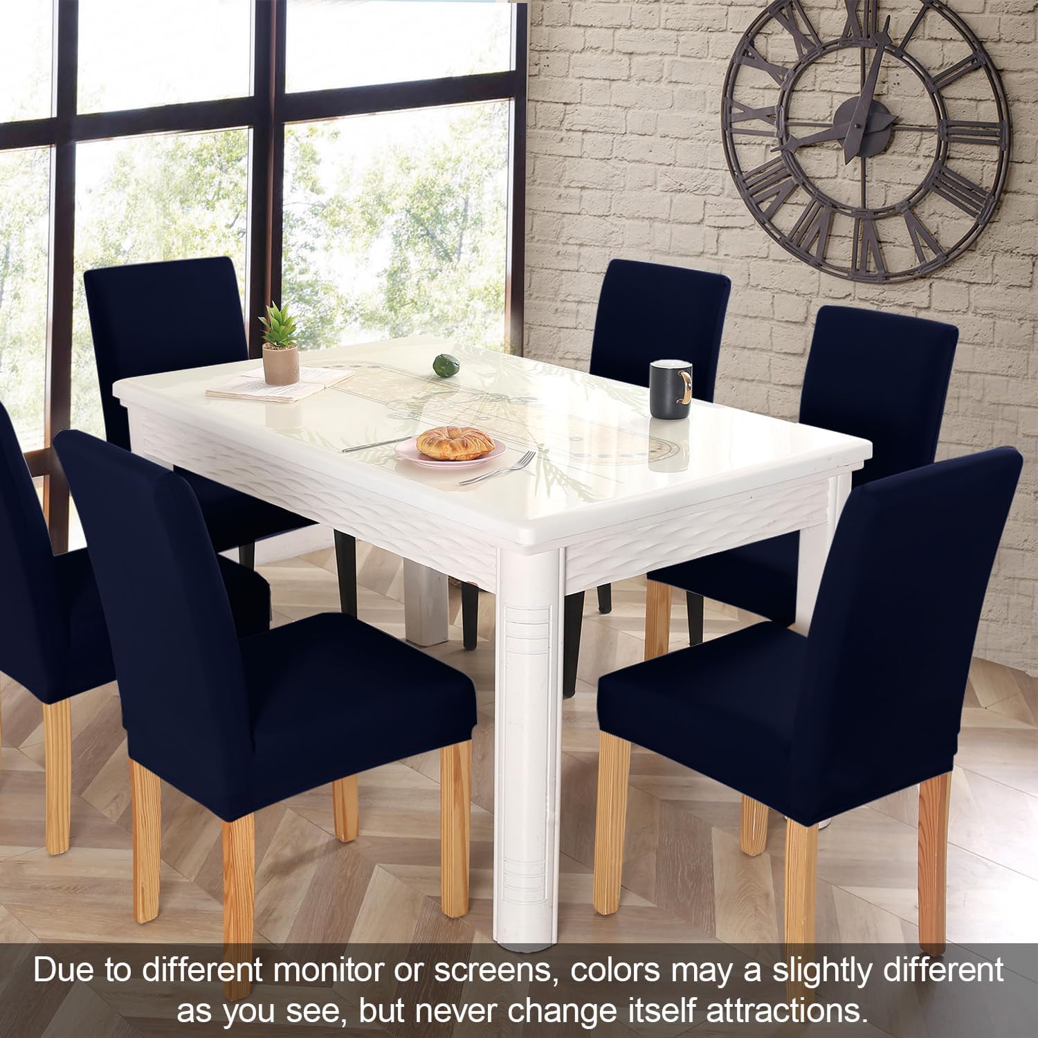 JQinHome 6 Pcs Dining Chair Slipcover,High Stretch Removable Washable Chair Seat Protector Cover for Home Party Hotel Wedding Ceremony (Navy Blue)