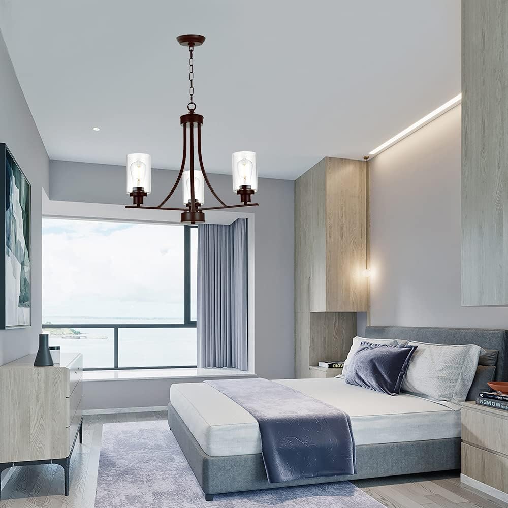- π§ 3 Light Glass Chandelier: This rustic kitchen dining room chandelier with high clear glass shadesοΌit is an elegant update for traditional and modern homes alike.It's the perfect light fixture to install in kitchen, island, dining room,living room,foyers ,hallway,bedroom,coffee bar, lobby, restaurant and any space you like.