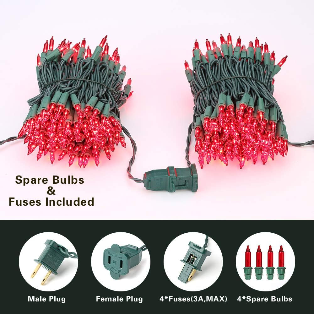 - Connectable Red Strand Lights: This mini Christmas light set is end to end connectable up to 3 sets (450 lights), expandable up to a longer 104.4ft length for any big project or small. UL certified, great value and quality, safety use.