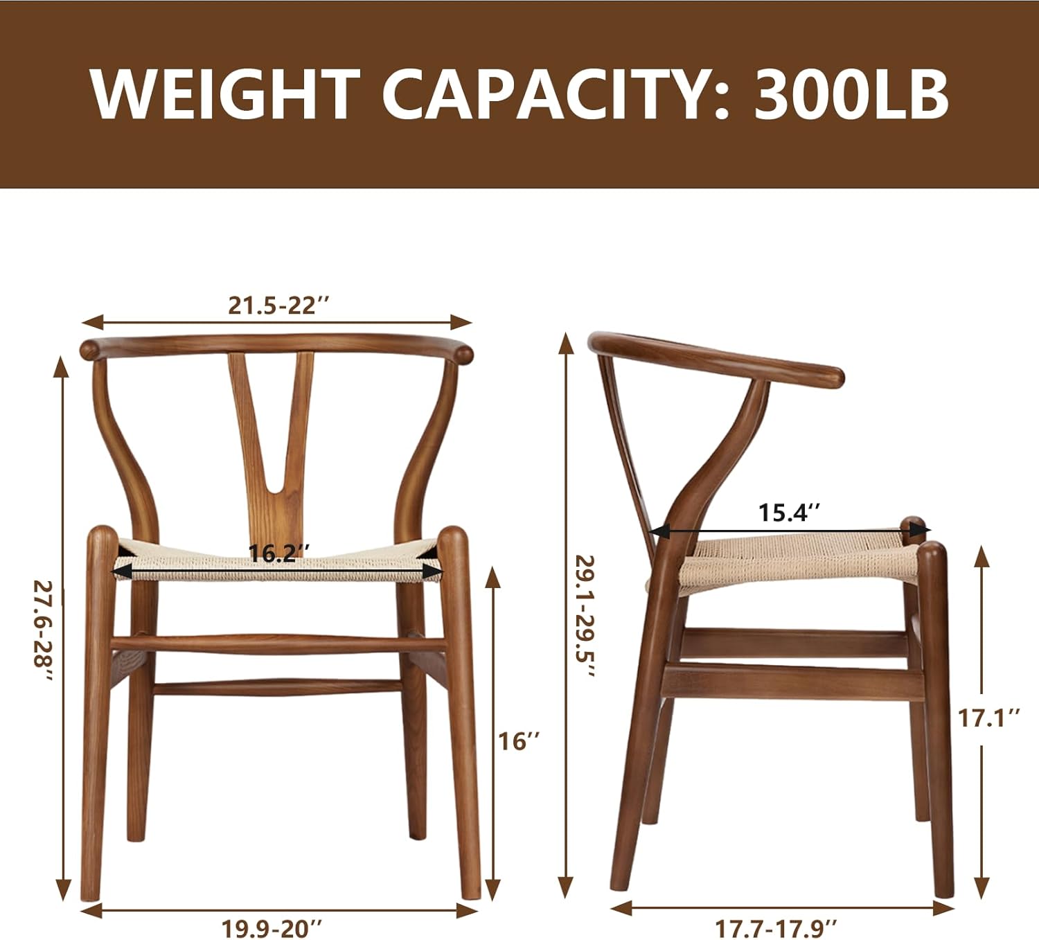 - 【Solid Wood Sturdy & Durable】 VODUR wishbone chair are made of solid and durable American ash wood. Each piece of wood is carefully selected by hand and assembled manually. We have tested that each chair can load at least 300 pounds
