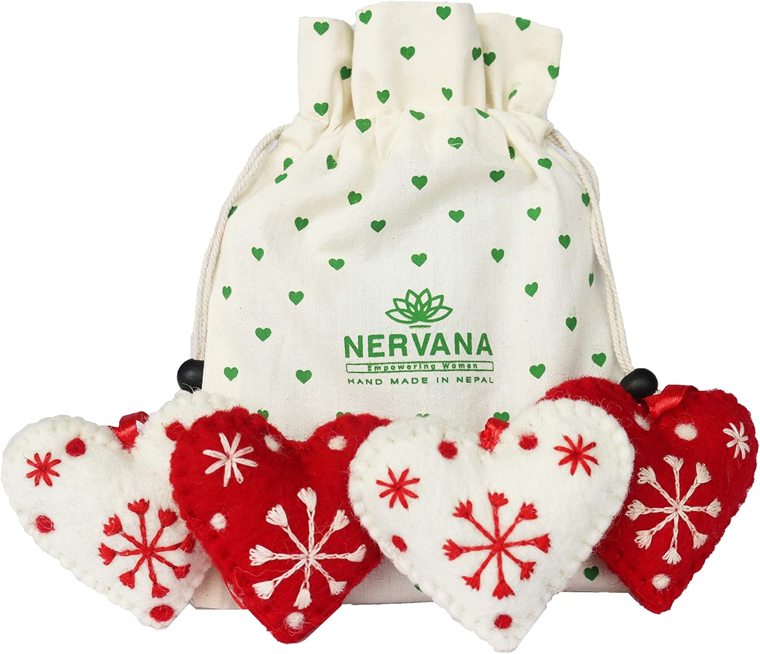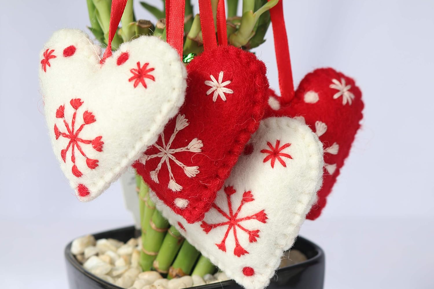 Hearts Christmas Ornaments Set of 4-Snowflake 100% Pure New Zealand Wool Handmade Eco-Friendly Valentine's Day Decor Shower Nursery Decoration Fair Trade (4, Heart)