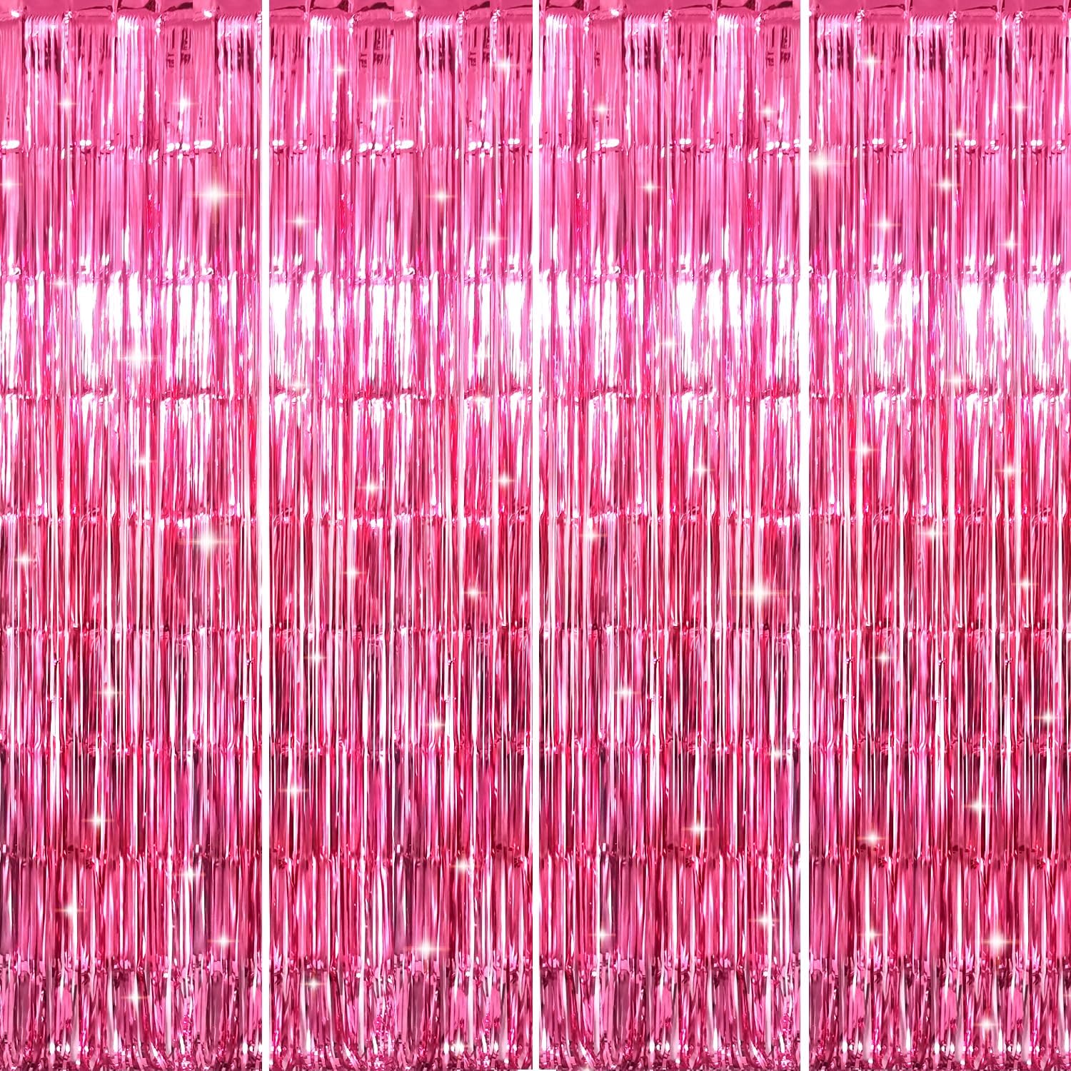 - Package Includes:4 pack hot pink foil fringe curtains,3.2 ft x 8.2 ft each,suitable for hanging on a door or coverage a wall fully