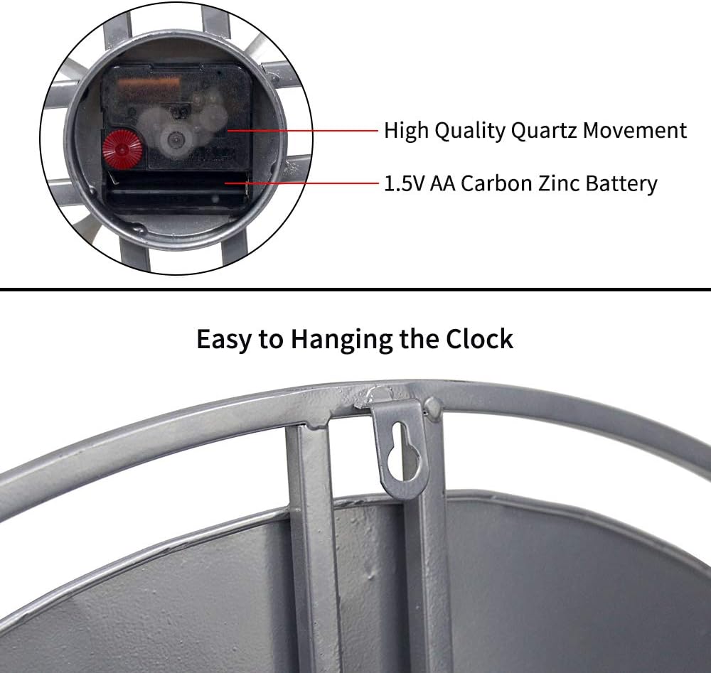 24 inch Large Wall Clock Decorative Metal Retro Oversized Clocks Decor for Home Farmhouse Living Room