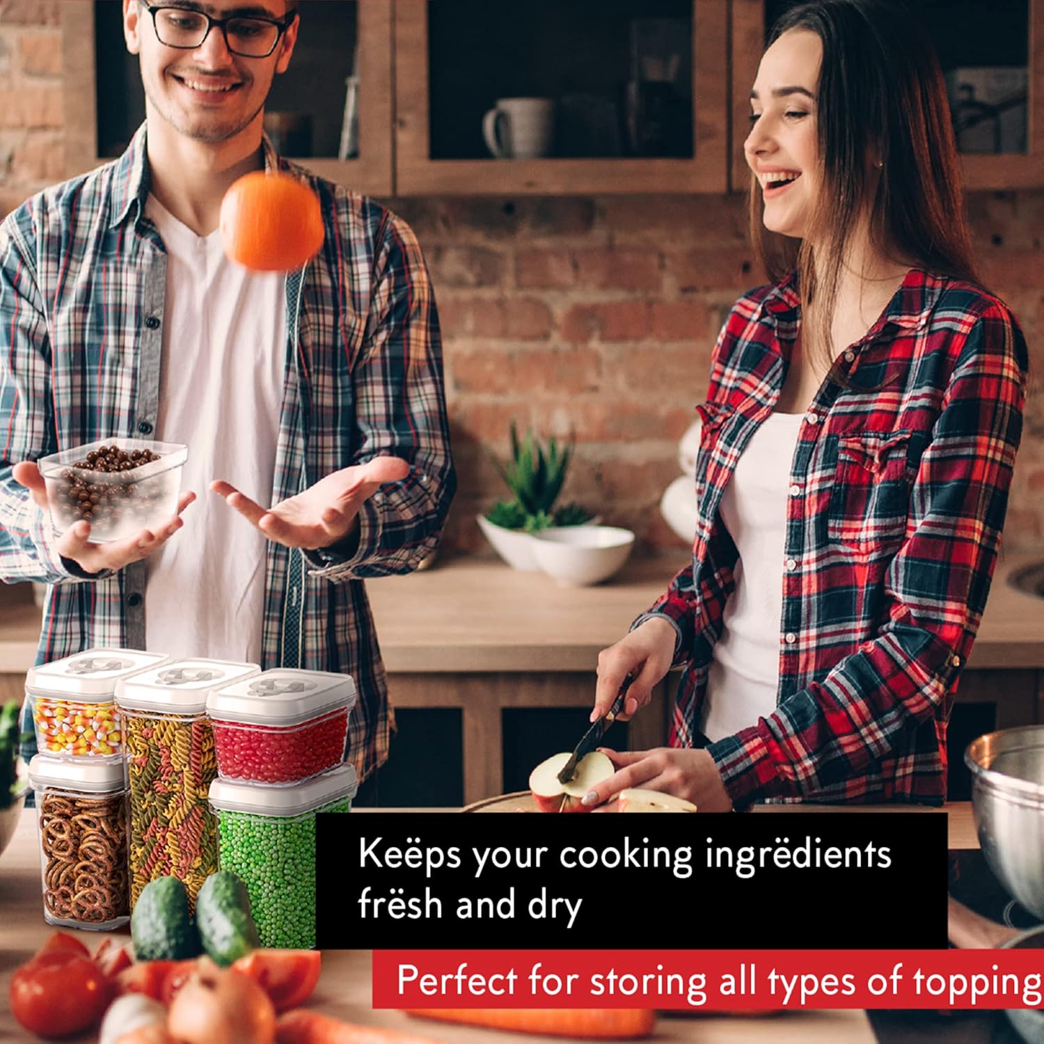 - Enjoy Your Meal With Fresh Food: Keep Your Foods Fresh with Our Easy to Use Airtight Lid-Lock Mechanism. No Dealing with Flimsy Pumps. Our Pantry Organizer Food Storage Containers Create an Airtight Seal by Simply Pushing Down the Ring on The Lid. Lift the Ring Up Whenever You Want to Open the Lid. The Airtight Seal Is So Secure You Can Store Liquids Without Ever Worrying About Leaks!