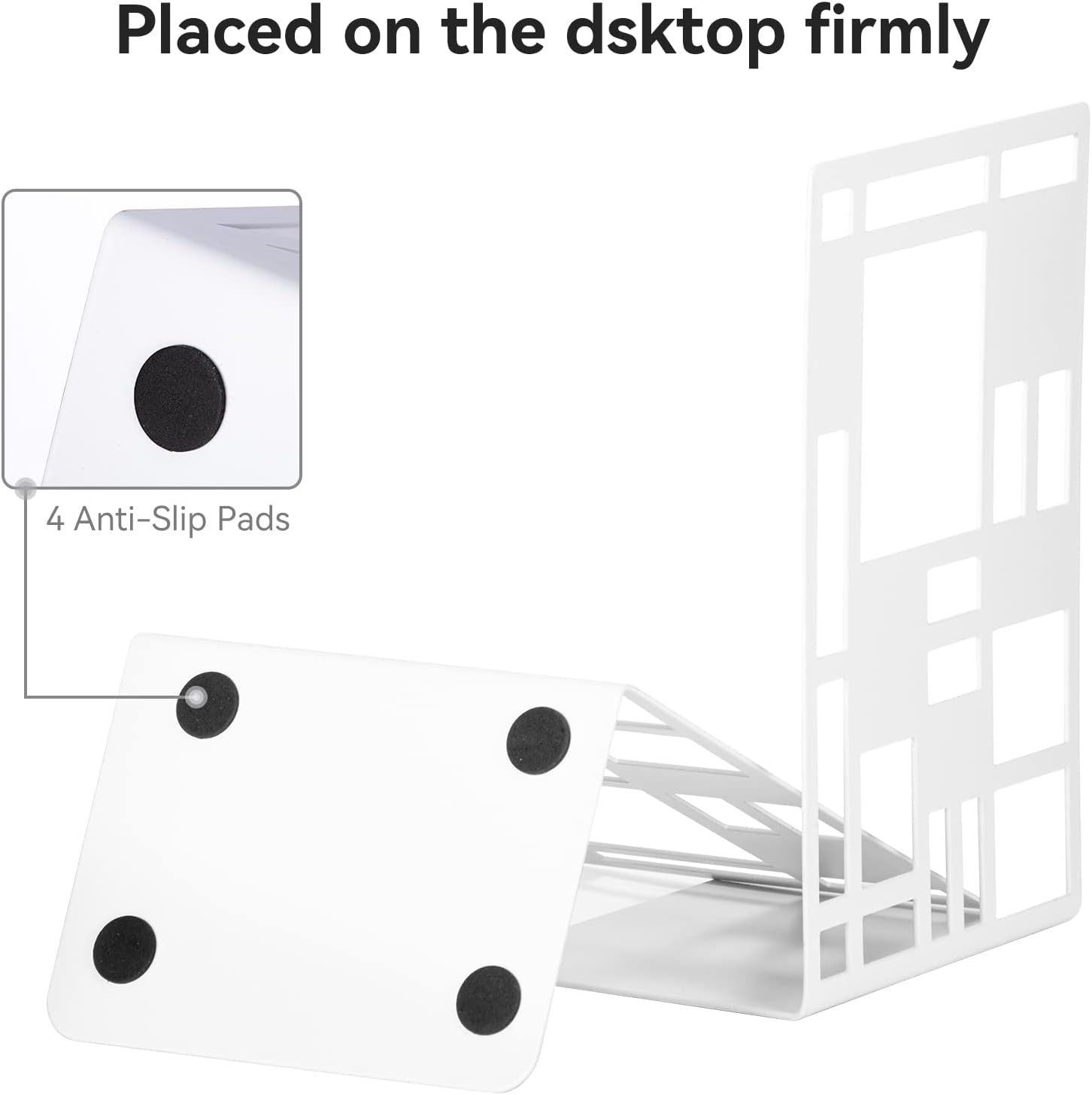 Book Ends, Bookends, Book Ends for Shelves, Bookends for Heavy Books, Book Divider Decorative Holder, Metal Heavy Duty Bookend White 1 Pair, Abstract Art Desgin Book Stopper Supports for Office, Home