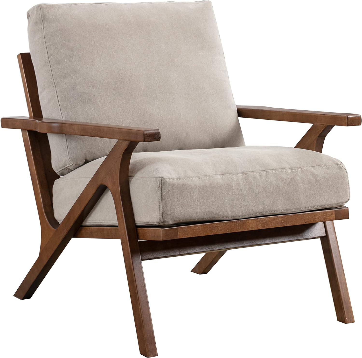 chairus Mid Century Accent Armchair Modern Upholstered Lounge Chair Compfy Leisure Arm Chair for Living Room Fireplace/Bedroom/Reception/Dorms, Denim Fabric Beige