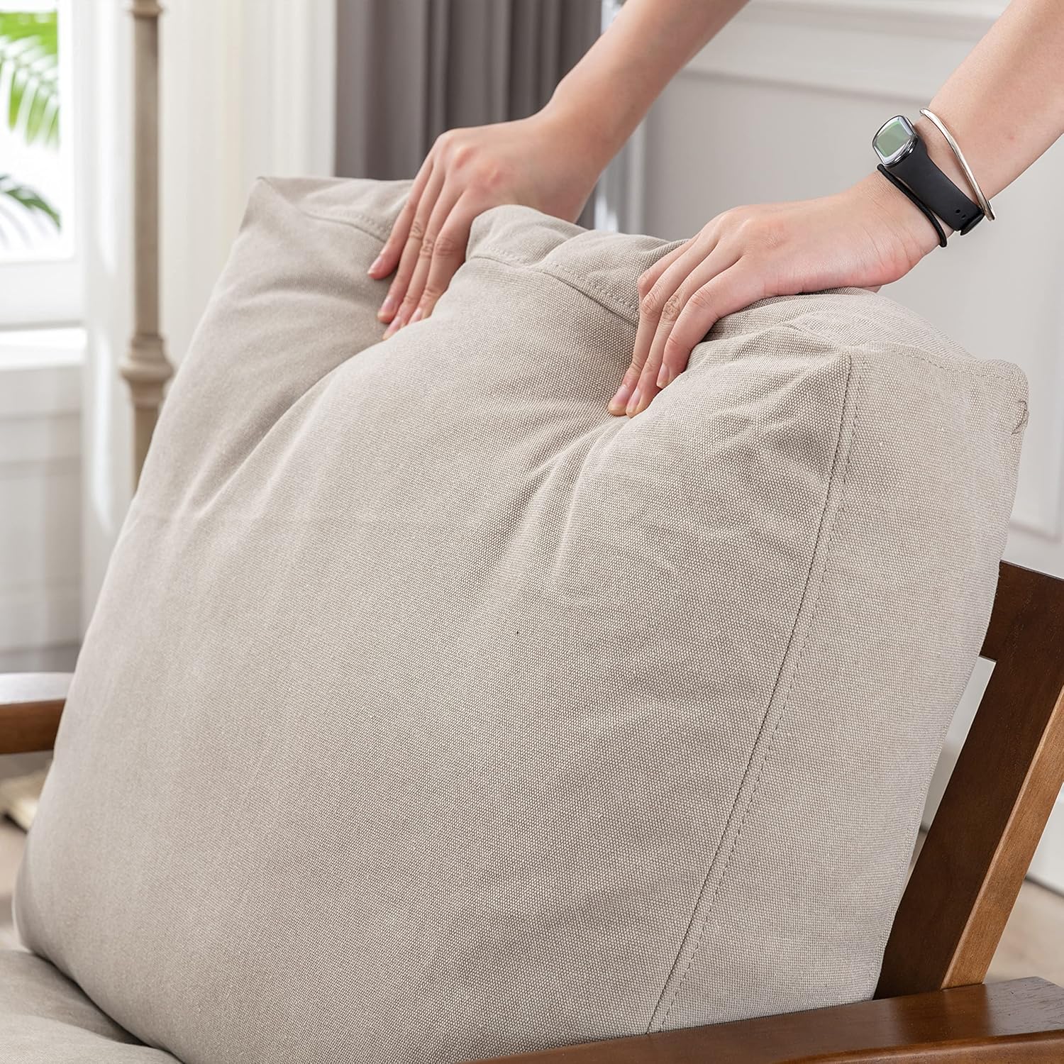 - Comfortable sitting. Straight and smooth armrest can support your arms naturally while thick and breathable seat cushion can fully relax your buttocks muscles, giving your body a light feeling, and the wide padded backrest can support your back well.